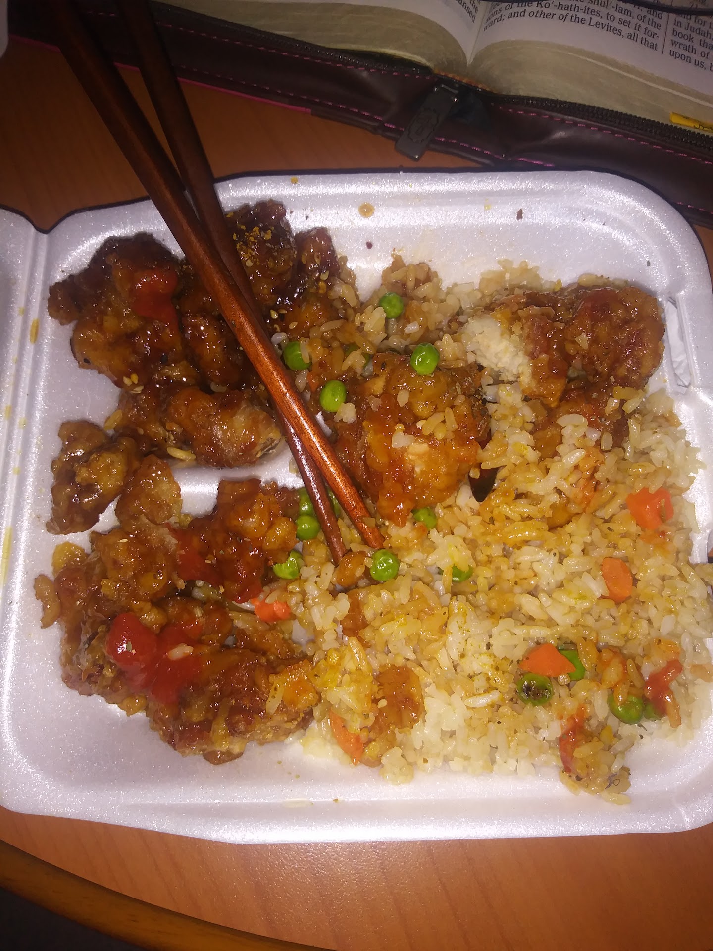 Read moreThe most albino fried rice I’ve seen, they don’t use soy sauce just a pitiful plate and very stingy with the items that were available And tasted very bland Chow Mein was very gummy I grabbed the spicy orange chicken because not else really looked appetizing, but even the spicy orange chicken had its fall backs as it was very tuff not crunchy hard to chew , I’m under the impression it was old food, I had a previous good experience at the restaurant a few years back, sadly the quality has gone down quite a bit no condiments were given so I’m assuming they are very confident in their product, needless to say , I came home and decided to just make a salad instead of continuing to consuming this garbage, called...
