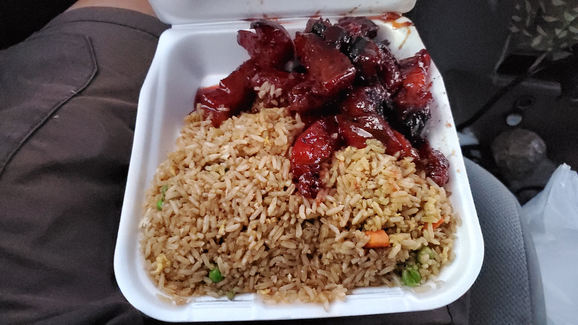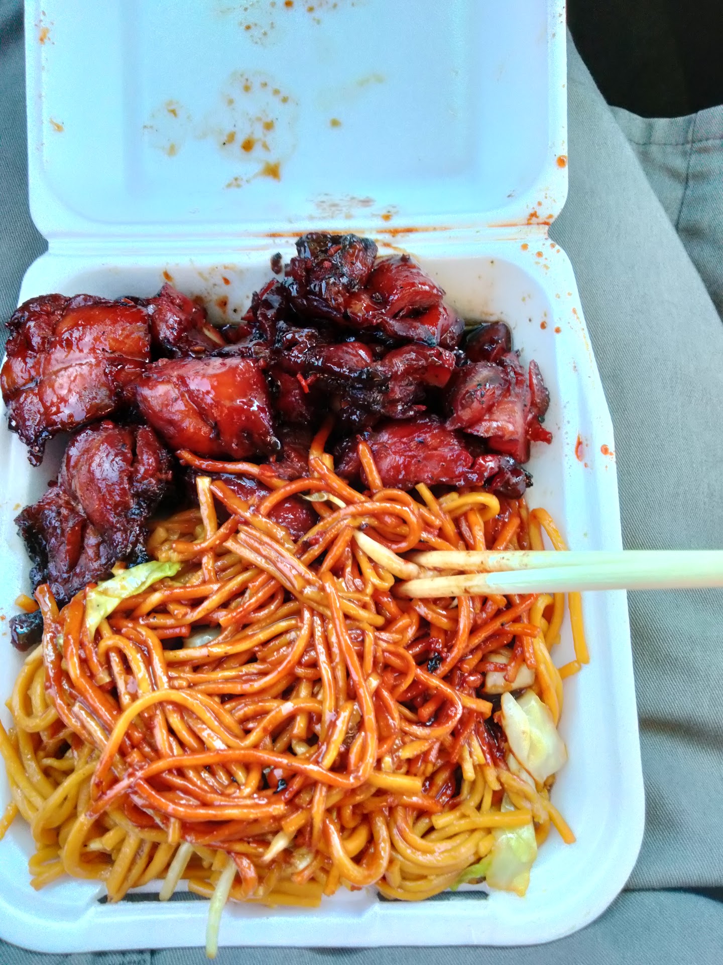 Read moreOrdered orange chicken. First, let me warn you. NO ENTREE comes with noodles or rice. You must order, and pay extra, to have noodles or rice with an entree. Who orders only meat??? Now about the "orange chicken"... I bought deep fried something?? It looked wonderful. Not one piece had any sign of moisture. This was beyond over cooked. If it weren't for the orange sauce, you could not stab it with a fork. They cooked it so dry and crunchy, I had trouble seeing, there were tiny pieces of chicken inside??? It was actually impossible to determine what was inside. It was damn sure cooked it until any germs were dead!!! They had a huge pan to sell from... I feel sorry for EVERYONE that played for anything from that pan! (Yup, I even feel...