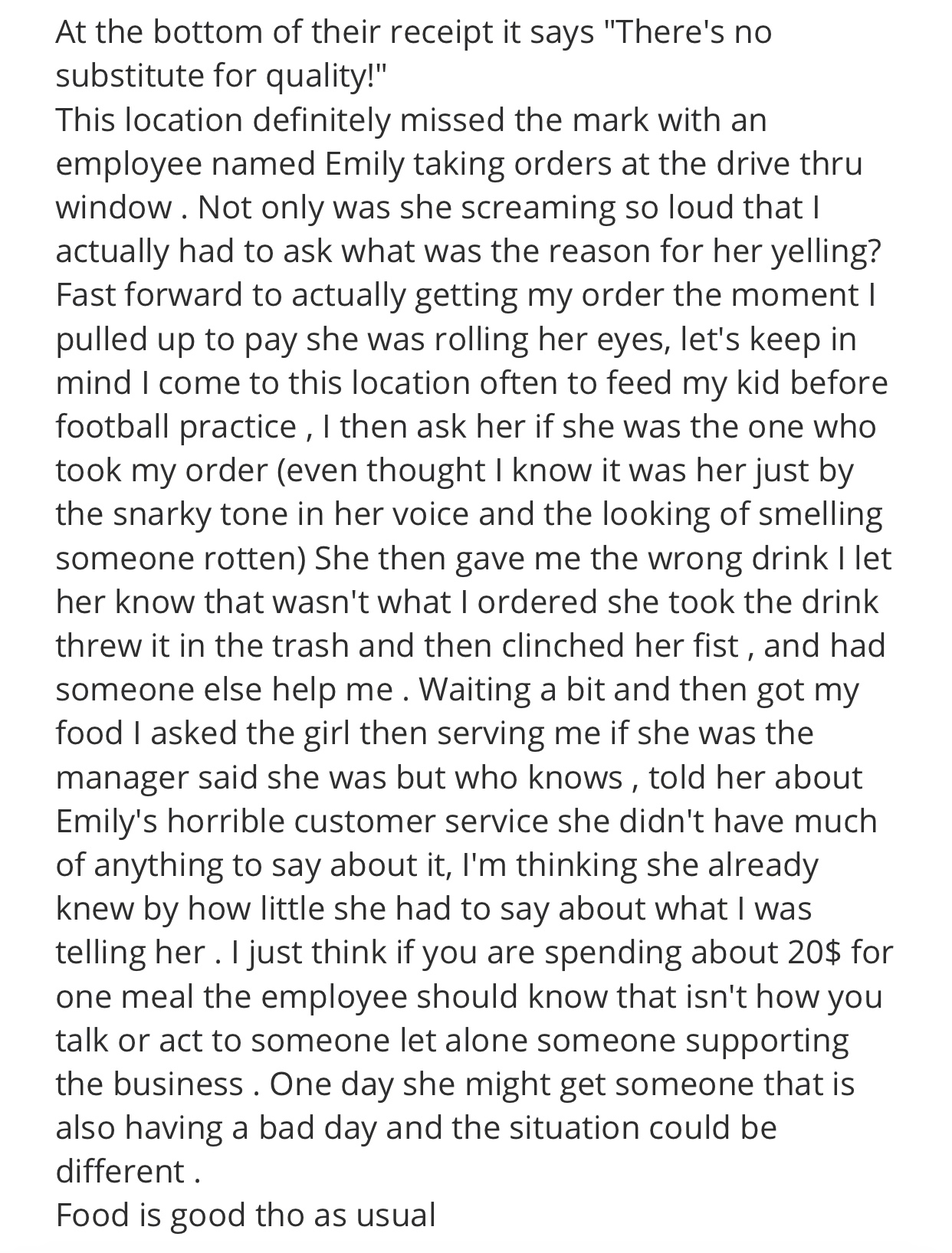 Habit is there any working number for your location? I have tried to call the number listed online, on your website & it goes nowhere? I ordered food from your location last night while I was at work, over $30 worth of food plus delivery fee. The person who picked up my food, took it to a unknown location dropped it off on the ground & when I got the message it was delivered & saw the photo he sent I called multiple times he refused to answer at first then refused to bring my order to where I gave him clear directions of my job location, I even told him I'm at work & can not leave! I contacted doordash, they tried to contact the driver & ask him to please bring the costumers order to the correct location, he even told them he refuses & to stop calling him. Doordash tried to reach your business as well by the number listed & they told me they couldnt make contact with you guys to dispute this. They were trying to get my order replaced & a refund for everything that happened. They submitted a web form & I submitted one as well for a refund & about what happened. This was so unprofessional on his part, I was very upset & in shock that someone would do something like this knowing a person spent money on their food & they never received it. I'm so disappointed & I just want my money back for a purchase I never ended up receiving. This dasher never gave his name or listed his name & I did report him & I hope hes never able to work as a...