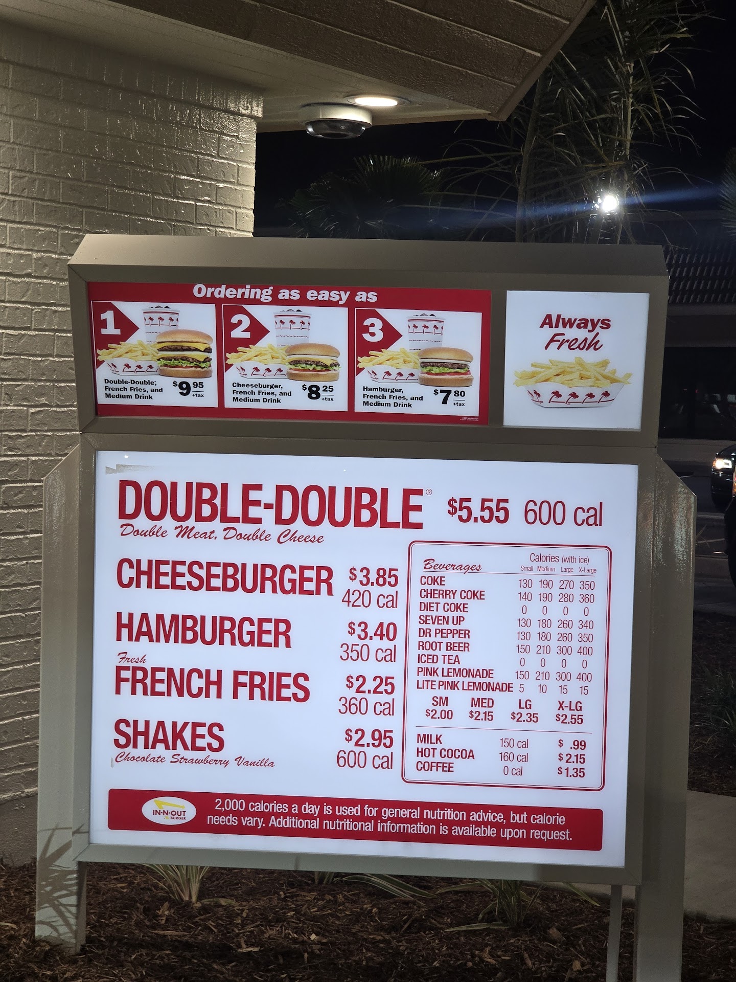 Well, I dined alone, so it's wierd for 1 person to order 4 burgers, that are double doubles lol ....and... parking lot was hella clean. And I'll tellya, to be having like lol 50 cars lined up, and 20 dine in customers, I literally waited 9minutes. NINE.