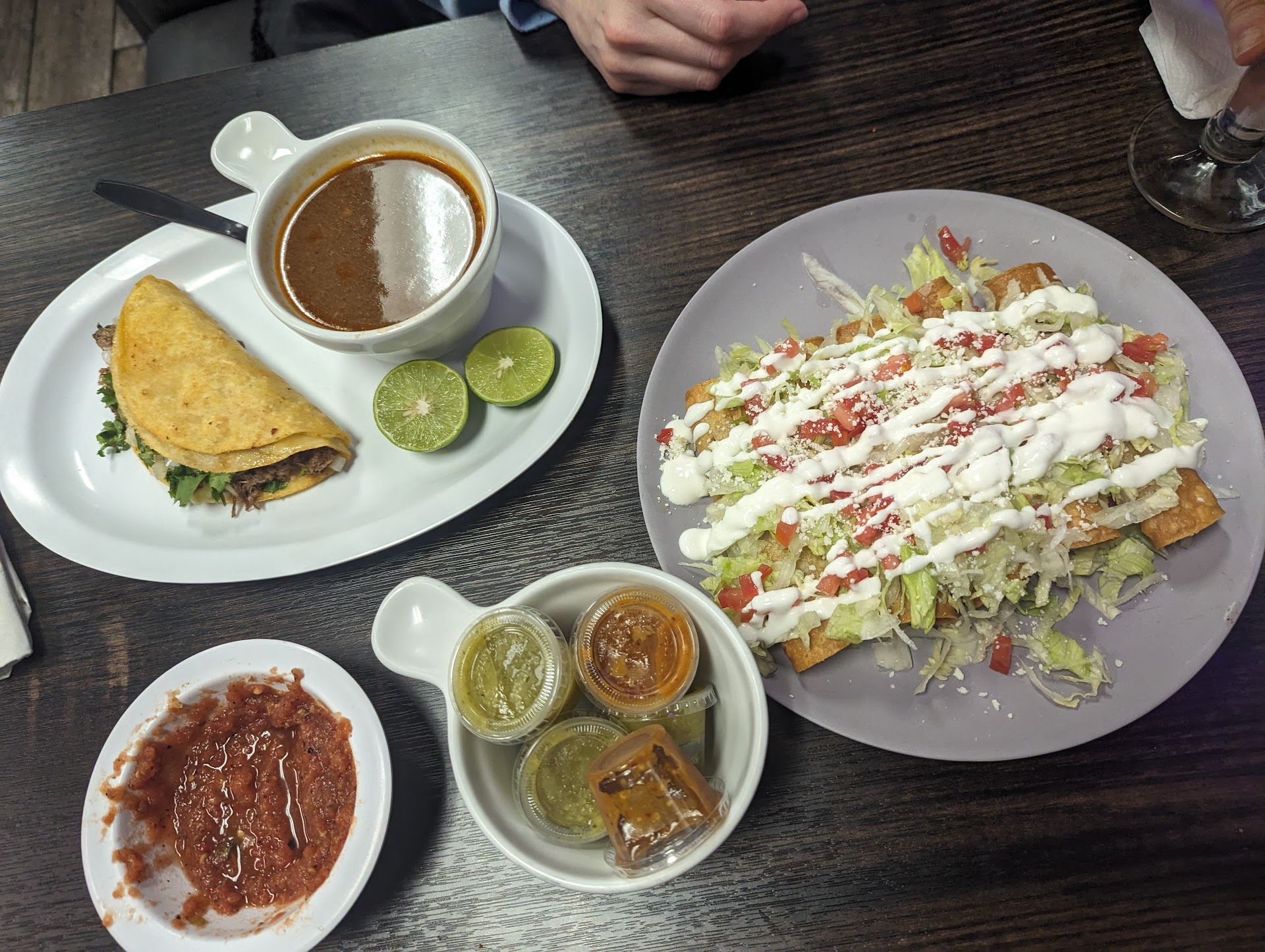 Read moreDelicious, hand-made tortillas! The food is very scrumptious. The horchata was very good, and I'm picky about my horchata. The tacos and mulita were of very good size. The salsas (greed and red) were tasty, not runny, and had a solid flavor and spice. Took extra home with me. Plenty of drinks, I recommend the fresh aguas near the front desk. Very clean, new restaurant. TVs were playing the latin channels. They have a bathroom behind the store, and you'll have to ask for the key and walk behind the building....
