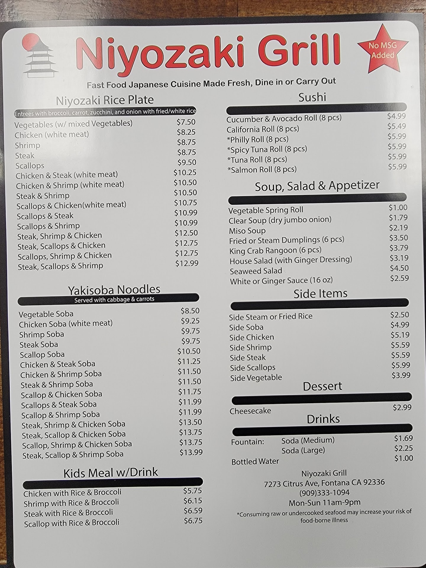I'm what you call a regular here at this fine establishment & bid you fair warning that if you love consistency in good food for a good price then you too will join the conglomerate of people that return here for these very reasons. The Niyozaki Grill sits in a busy plaza next to one of Fontana's arteries off of Baseline. The staff are more then accommodating and I have never had any issues with any of my orders what so ever! The one thing that "grinded my gears" 😅 was when they took Sushi Nigri off of the menu albeit the options are expansive and I have no problem substituting with different rolls. Undoubtedly a spot to check out & don't forget to practice those chop-stick skills. Enjoy my...