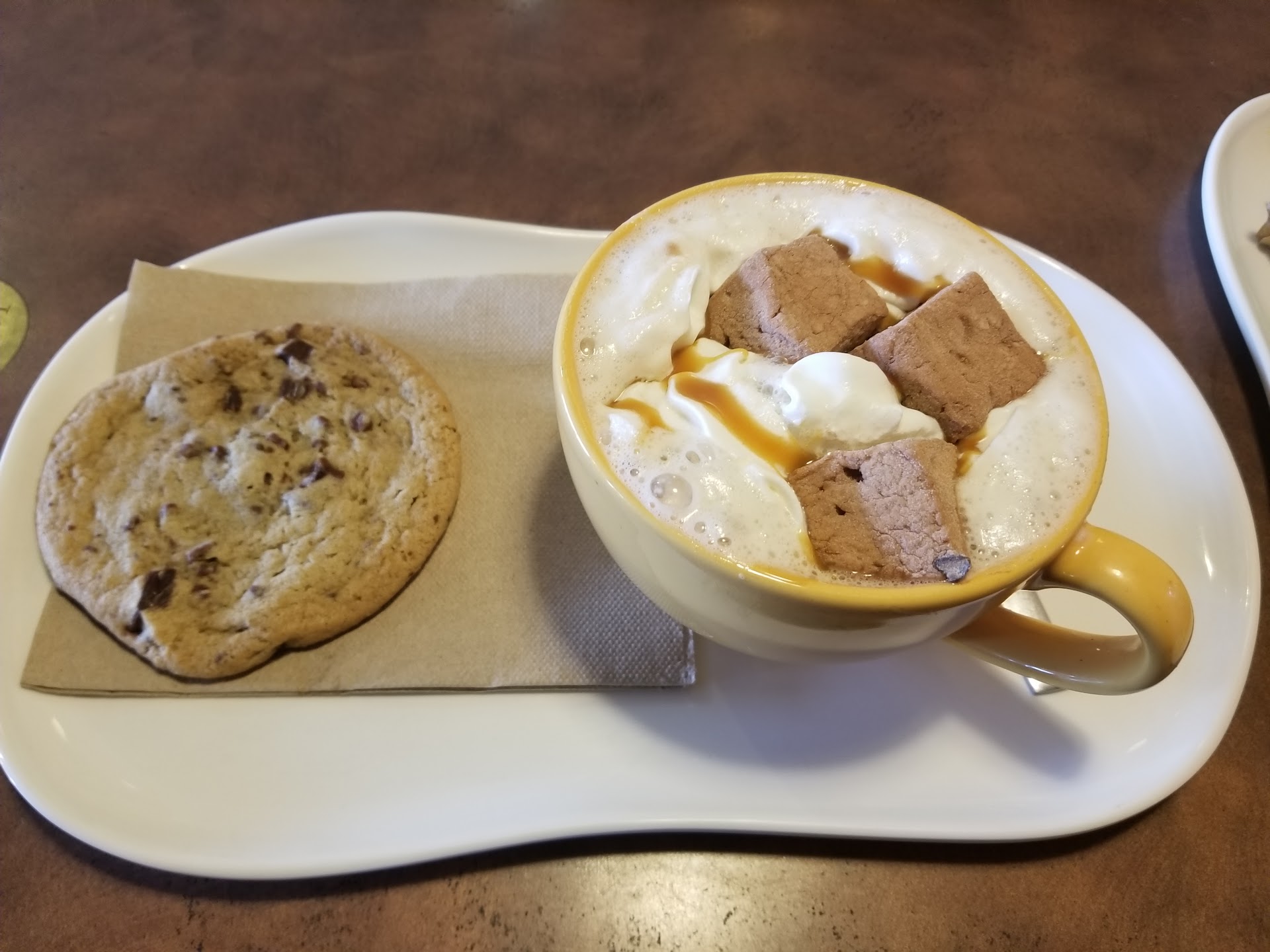 For my drink I got the Hot Chocolate with Chocolate Chip Marshmallows. It has caramel in it which made it too sweet for me to be able to drink it all. But it was good and the marshmallows were so good!