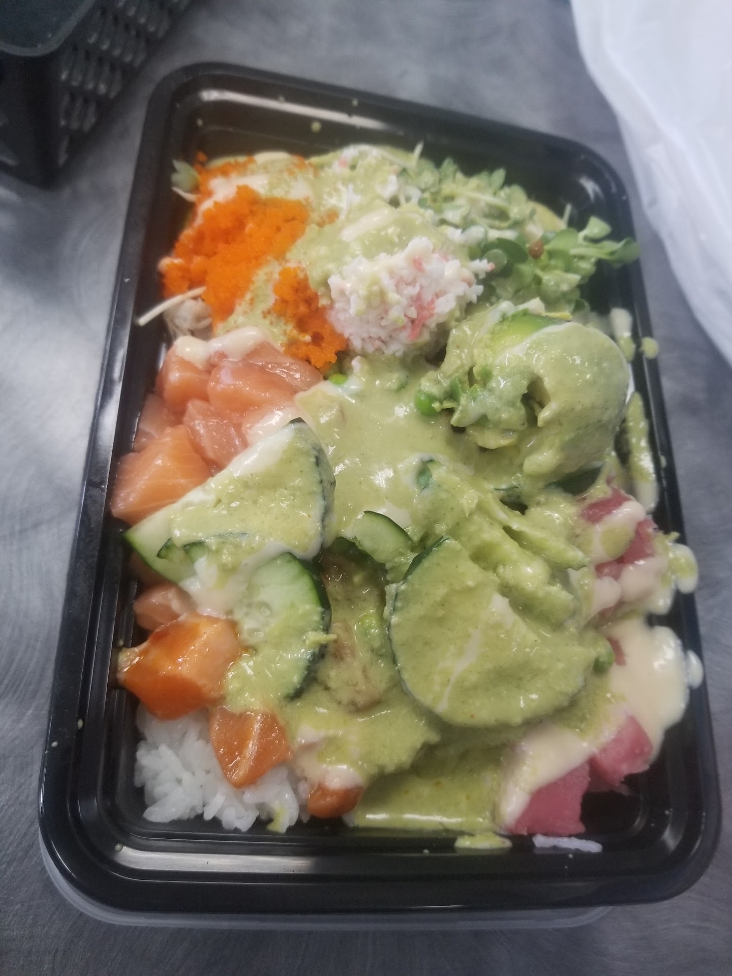 Read moreI've read other reviews and noticed similar concerns regarding the quality of the ingredients and my guess is towards the spicy salmon. Different areas in the salmon has lighter and darker tints of coloration especially being a bit darker towards the end of the tail but is due to higher amounts of fatty omega-3's which is actually better for you. There is no way the quality is ever in question due to the high demand in their business. I, myself, eat here around 3 times a week for my lunch breaks and see how busy they can get. So now being educated on the subject I hope it affects your views on this establishment, the best poke restaurant I've been to and is unmatched due to the quality AND quantity of...