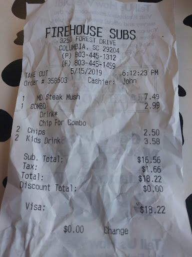Read moreFirehouse is definitely one of my favorite lunch spots; however, this location needs to get it together. 1) EVERY time I call in a order and come in to pay, I end up standing & waiting for another 10 minutes when my sub is ready and sitting there but nobody called my name to see if I was here. I end up having to ask "Is that order for..." 2) Last time placing a call in order, then doing the same thing described in #1, I get back to work to find my club on a sub only has lettuce & mayo/mustard. Like, your job is to make subs and this is clearly a fail. The entire staff needs to be replaced, maybe move some people from the location on highway 1 in west columbia, because I never have issues...