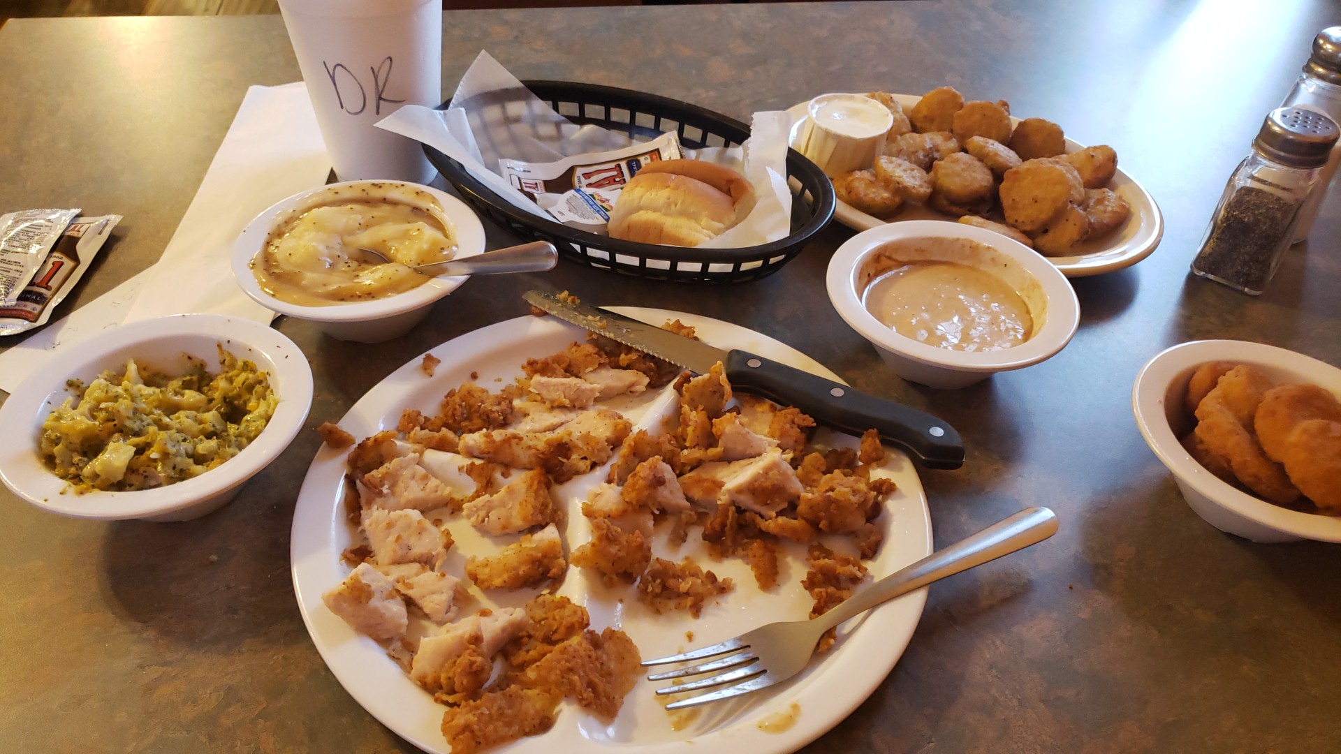 Stopped in for the first time with my daughter because of Trip Advisor recommendations. I ordered the hamburger steak with chilli and cheese, fries and a salad, my daughter got a chilli cheeseburger. I ordered my wife a grilled chicken salad and a veggie plate consisting of Mac n cheese, broccoli casserole and sweet potato casserole. I also got a small side of chicken salad and pimento cheese for my wife to try along with a 16oz of their house made ranch dressing. There were no complaints at all. Everything was delicious. The young lady who waited on us was very friendly as was everybody we encountered. To the waitress with the tattoo on her shoulder, if you're in the market for a future ex-husband, let me know. I'm kidding. You have a beautiful smile. Thank you for a great meal and the patience you showed to us first timers. We...