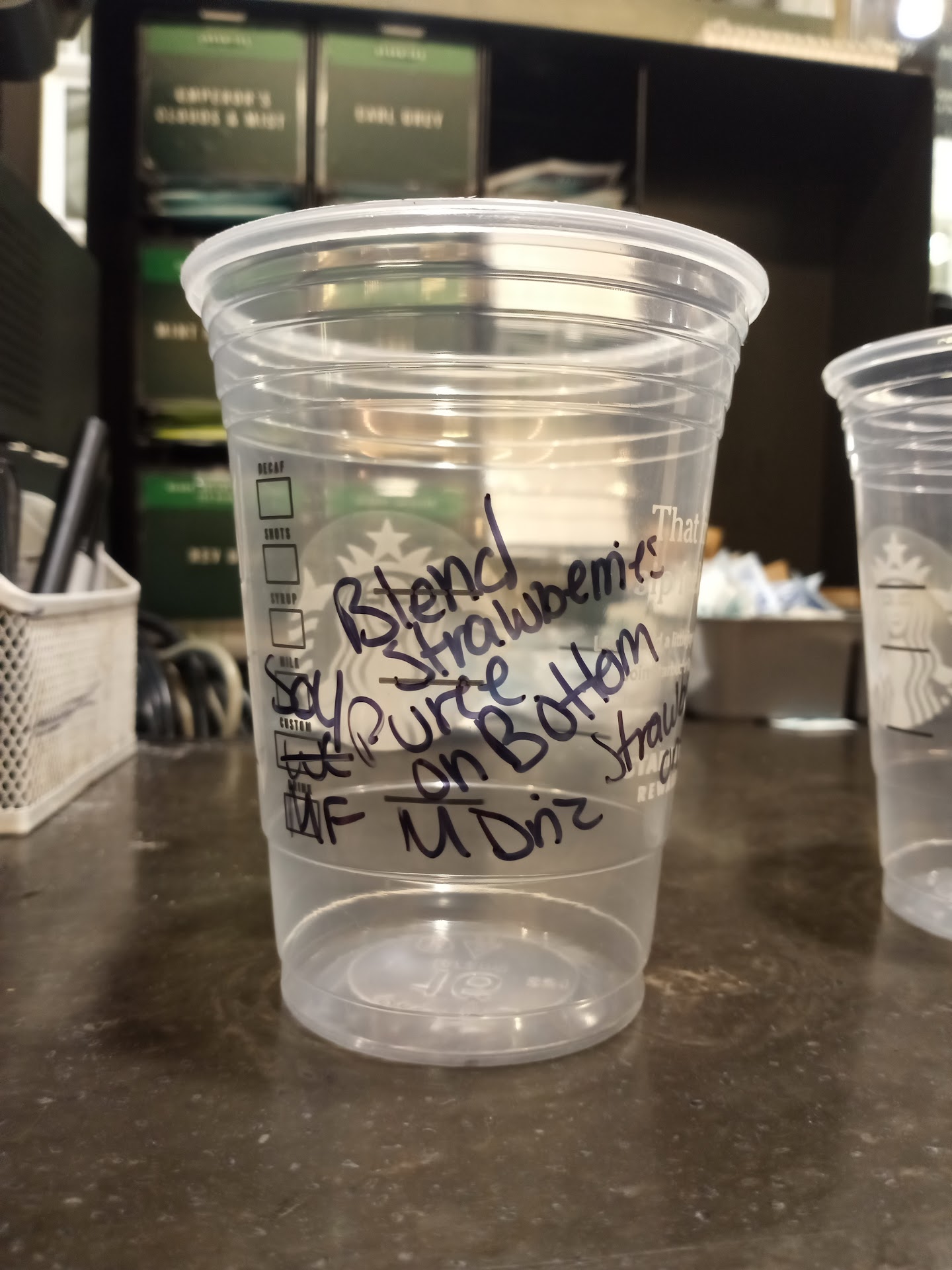 My current review.... I love the staff. They always work with me on my special order. Have been disappointed though the last 4 trips because they don't have my "cinnamon dolce" flavoring... Makes me super sad because I can't have my "Cinnamon Roll Frappuccino" without it. And NO substitutes work either, sadly. It's not through lack of their trying tho. I hope they get it in soon. Makes me sad. I miss my drink.... 😭😭😭😭
