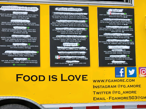 Listen, there are good food carts out there, and then there are full on fine dining quality chefs freeing themselves from the burden of brick and mortar to make their art available to the common folk. FG Amore is one of those amazing finds, where every dish is a surprise surpassing the last. We started with the beet salad, which in most restaurants would be a basic affair, but not so here, from fresh made Parmigiano crisps, fresh mozzarella balls, romaine and arugula, and beets soft savory and only lightly earthy, finished with a fresh herb dressing and grapefruit. This salad was a delight, and the serving large enough to feed two for dinner. Then the Bucatonis, the fungi and the pesto. The fungi used excellent oyster mushrooms to make a delightful earth sauce, while the pesto is a flavorful cream sauce featuring delicious cherry tomatoes, my partner described the pesto as "like a walk through a garden" in the best way. Lastly, and a true highlight of the meal, is the absolutely miraculous pillowy yet crisp Focaccia garlic bread, which we both agreed was in the top 3 breads we had ever experienced. Like a buttery cloud, simply a delight in your mouth. We will be returning soon, and can't wait to try the desserts, which of the food is any indication, must be sensational. We suspect there is one or more very proud Italian mother in the background, cheering on these...