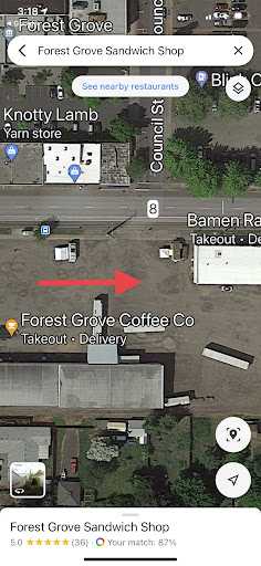First of all this is NOT a sit down restaurant, even pre-COVID. It’s simply a walk up or drive up kiosk that sits next to and toward the back of a large commercial building. Previous reviews give a different impression. The red arrow is its approx location at the time of my visit. Very easy to miss even using a GPS. There is also a coffee kiosk on the other side of the empty lot.