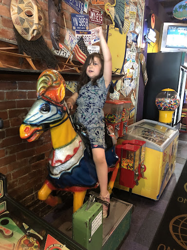 The owner also offers a Greek salad, which I plan to try and review next week. The decor was incredibly intriguing, featuring bowling balls and pins on the wall and a bicycle rickshaw hanging above our table. To top it off, they even have my favorite arcade game from my youth, which added a wonderful touch of nostalgia.