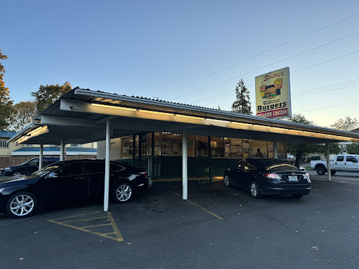 If you happen to drive through Forest Grove, OR, either on your way to Portland or from Portland to the ocean, you really need to stop at Scottie's Drive-in for a burger. Avoid the fish and chips (fish is not good!) and stick with the burgers. I ordered a regular (meaning one patty) bacon cheeseburger that came with everything; lettuce, tomato, onions, etc. It was the BEST burger that I've had in years! It is cooked to order, so you have to wait about 10 minutes or so, but well worth it! What I liked best was the bacon as it was well cooked (no chewy undercooked fat) and plenty of it, not just two tiny pieces. I would have given the food 5 stars but the fries were too salty to eat. Next time I go, I'm going to try their fish and chips and ask for no salt and see if they can accommodate. Unfortunately, the atmosphere was not so great. There's old red and white checkered valances for curtains and nothing really worthy of looking at on the walls. Some newer 1950's decor would really help the atmosphere instead of a few faded out pictures of a few classic cars. It could also stand a top to bottom cleaning, but the tables were clean. The parking was tight and you had to fit your vehicles between cement posts and there were only about a half dozen spaces or so. Altogether, we ordered my regular cheeseburger, my son's double cheeseburger and double fries (a huge amount), my daughter-in-law's regular burger, chili fries (another huge amount) with two drinks, and it came to $40.00....
