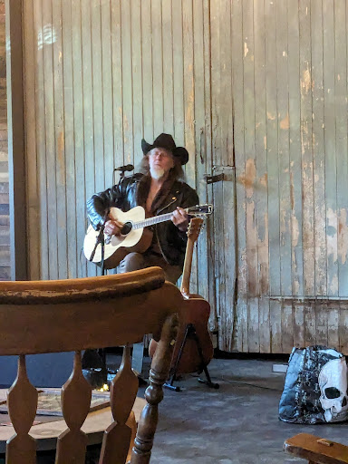 Awesome location, the tables are all unique; living edge and other mixed media. Looks like an auto garage but it’s a great space. Very unique.