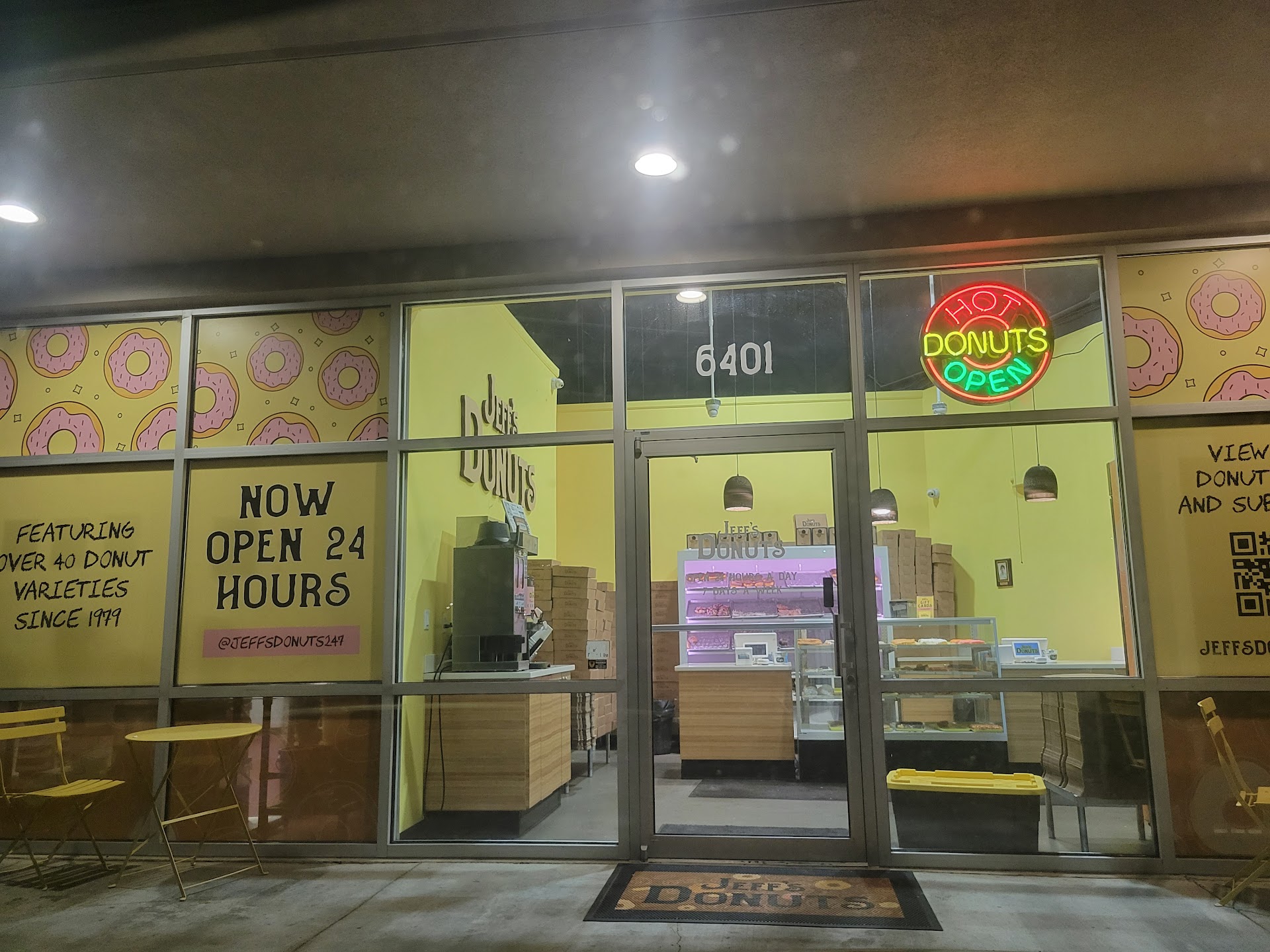 My first job was working at the local donut shop in the town I grew up in. It was as hometown as you can get (the building was a gas station before it became the Holly Donut Shop). That donut shop is still in business to this day after opening in the mid 70s. The reason I mention that is that Jeff's Donuts kind of reminds me of the Holly Donut Shop.