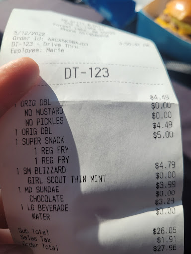 Read moreOrdered burgers, chili dogs and fries to go. The person that packed the bags, stood the chili dogs upright. The chili of course, slid to the bottom of the container, and through the bottom of the bag. Not knowing this, I lifted the bags up from my car seat and everything fell through the bottom of the bags and all over the interior of my car. I gave them a second chance. I tried one more time. I stopped the person bagging the chili dogs, as he was putting them in upright. I took them out and bagged the food myself. Got home. The hot dog buns were hard. The hot dogs themselves we're room temperature, despite having chili on them. The burgers we're dry and overcooked. And they forgot to pack one of the fries, which really didn't matter because they had been sitting there for a while and should have been thrown out. Never again. Their food is awful and this location has...