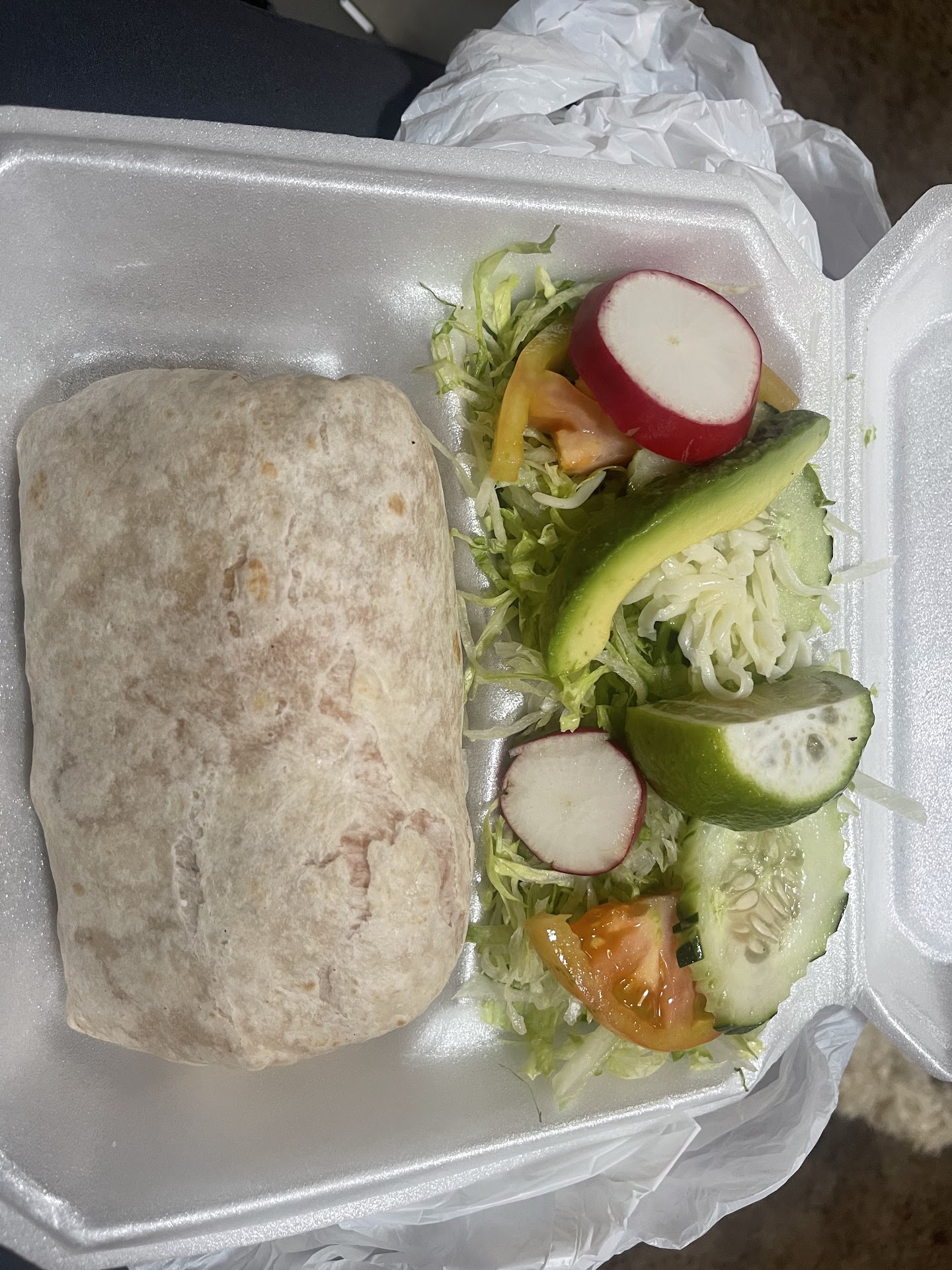 First time and last time coming here. I called in my order and took it to go. The woman who answered the phone was rude. She didn’t even say hello. I ordered she did not mention the price but I guess that was my fault too because I should’ve known to ask when she didn’t say and they didn’t have the prices posted on the menu. She quoted a time of 30 minutes which seemed extreme to me for just one chicken burrito apparently it didn’t take 30 minutes because I got there after 20 minutes and my food was done and already a bit cold. The burrito was just ok everything except the rice meat cheese and beans came on the side. When I say everything it’s just a bunch of lettuce, a couple of tomatoes, a couple of cucumbers, and a couple of radishes. I was not impressed to say the least. They gave me a green sauce and a red but my burrito did not come with sour cream as advertised neither of the sauces were really good to me just your basic green and red sauce. So my main issue is that’s my total was $16.91. Even with inflation I feel like that’s ridiculous for just a regular sized burrito and a few cheap vegetables. Overall I’m really disappointed because this place has four stars and Im not sure why. I would not recommend there are lots of other options around here and again I only tried this because of the rating but the...