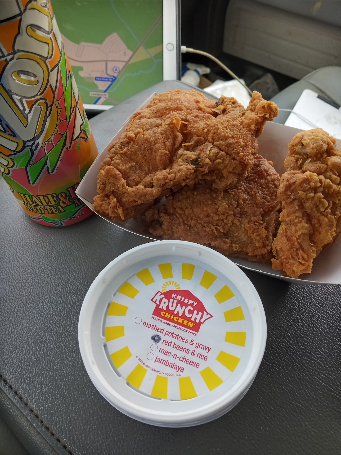 Read moreWell I know it’s gas station chicken… but ya know it’s actually kinda good. Big chicken breast and maybe a little too much batter but still good and much better than the JJ’s right by it. That JJs is like pouring salt and grease in your stomach. So anyways kk chicken from the gas station is much better and more food...