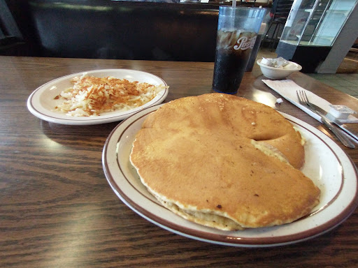 I hate to give a bad review because everyone was very nice and friendly. But I went here because I really wanted some light and fluffy pancakes....I haven't had any in at least 5 years. I was brought one big pancake that was dense and doughy in the middle. The edge was dry and crumbly when I tried to fork it, though. It also had a slight taste of cornmeal and old cooking spray. The hash browns had the same taste of old cooking spray but stronger. Other than that, there wasn't much flavor. I was thankful for the pancake syrup. I didn't complain, just ate what I could and paid. Maybe lunch and dinner are better? I also arrived just before lunch, so maybe the grill just hadn't been cleaned up yet? As for the restaurant itself.... It's definitely an old place. Could use a makeover, but it's not bad. Has kinda a cute old town charm to it. Other than tables needing to be wiped down, it seemed clean. I won't go back for breakfast but might try lunch there. I did see a man get a hamburger and fries and it did look good.