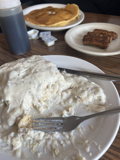 Read moreThe hours for breakfast and lunch don't mix. I wasn't able to order anything but breakfast, which is not crazy, although I was looking to get a BLT. That is mostly breakfast items but I could not. The biscuits and gravy were decent but lacked any real sausage. The pancake was over cooked and under cooked at the same time? The chef/owner also can't cook a steak to temperature. We sent it back because it was so tough, asked for it medium rare and it came out the second time well done again! The waitress was so apologetic, it was clear she didn't want to upset the cook by taking it back again. She said she would comp it on our check, but I was afraid that she would have to cover it herself. No one needs that kind of stress. This place could go get the slightly expired food at the grocery in town and have better quality sausage links. Don't waste...