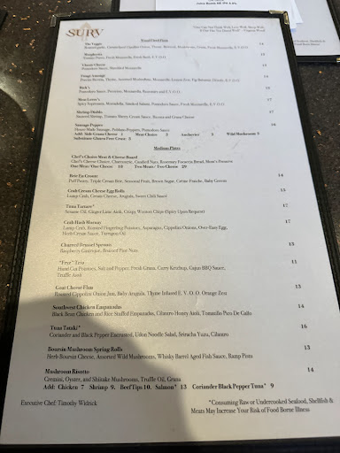 This was our first visit to SURV, and unfortunately, it will also be our last. This visit was on a Wednesday, and the restaurant wasnât particularly busyâmaking the lackluster service and food quality even more disappointing.