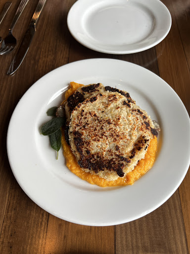 Was there for our aniversary. Wanted to have a special evening and meal. It was an absolute bust. Walked into the place and it was dark and cold, wasn't sure it was open. We were one of two dinners there. Of course they seated us right next to the other dinners. Not good. We ordered a large salad, and our two entrees were The Oscar and the Polenta with Roasted Veggies. Receved the salad and it consisted of a bowl full of salad stems with no dark green lettuce leaves. It also had candied walnuts that were so hard that I'm surprised I didn't crack a tooth eating them. The salad dressing was very watery and had zero flavor. The entrees arrived at the table and were not even luke warm. The plates that the entrees were on were ice cold. I could smell a strong fishy smell from my dish as the wattress brought it to our table. My dish had Salmon and Crab and it was definitely not fresh. I took a small taste and it was absolutely dreadful tasting and ice cold. My wife's dish consisted of lumpy, gross looking polenta with roasted veggies on top. It looked dreadful. The polenta looked like it had cottage cheese in it. The roasted veggies that were on top of the polenta looked old and very unappetizing. My wife would not even taste it.