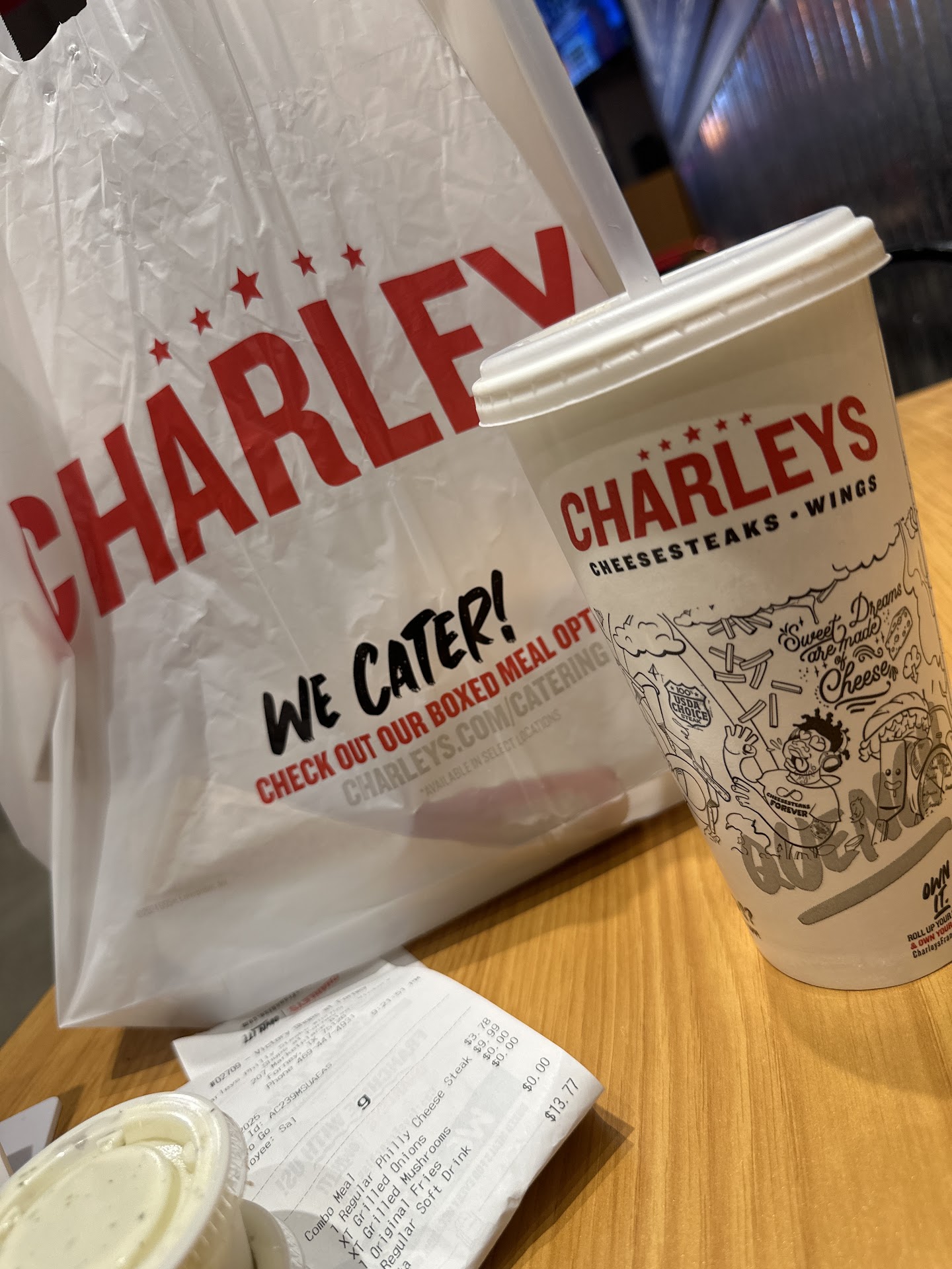 Ā Ā Ā Read moreIāve never been to Philadelphia, so I canāt compare the taste authenticity to ātheā cheesesteak, but Charleyās is definitely not lacking. We were greeted by our kind and patient server, Faith, who took the time to explain our options and answered questions before we ordered. I got the original Philly cheesesteak combo and my husband got a chicken Philly combo. The fries were crispy, hot and fresh and there is Cajun seasoning at the condiment station that I used to add an extra āumphā to the fries. Our sandwiches were flavorful and had a perfect balance of meat and the other stuff (mayo, peppers, onions and lettuce). The sandwiches needed no extra seasoning and the small filled me up. The restaurant has a chill, warehousey vibe. I took off one star because the floor was sticky. All in all, Charleyās will fit nicely into our restaurant rotation for...