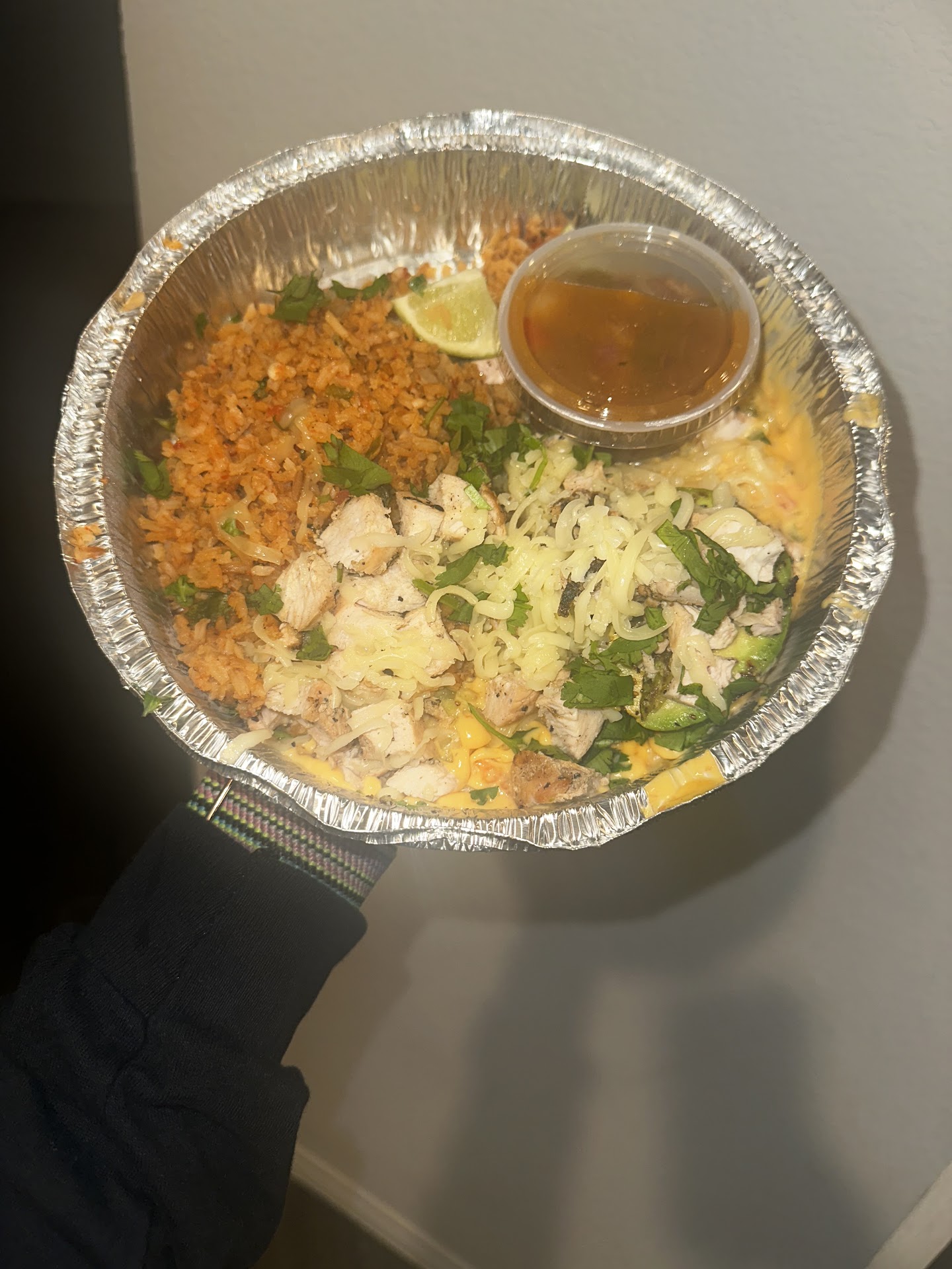 I used to come here when the location was in Oscar delta before they got there on location and I started coming here over chipotle because yea it was like 5 dollars more it was worth because they were stingy with the other meat , rice , beans like chipotle is and they weren’t charging extra for everything that you get on top, I used love them as I knew I was going have this to eat on about two days , now you will be lucky if you not still hungry after , they barely want to filll you bowl with rice now, I can still see the bottom of the container, they barely put beans I have to ask for extra just so it can somewhat cover some rice, chicken they barely want to give to two small scoops trust me are very small scoops, extra is 3 dollars they say, then when we asked to put the queso on the side they we normally put on top of the bowl for FREE we were told if we wanted on the side instead of poor it on there that would be Extra 4.50 cause we are paying for the little plastic cup they have to put it on , no lie I can’t make this up, and the queso is even a small amount now, all the toppings you ask for you have to end saying “ can you add a little bit more I’ll pay extra , cause it such a small amount now even they corn, oh but they will give some lettuce though that’s about it , this place has definitely went down since they move out of Oscar delta , all the people that worked in there were nice and friendly and had no problem giving 16 dollars worth of food , now they are charging extra ( even the little cup) and portion are super small, my sister just moved out here and I had been bragging to her about much better the were than chipotle and how they were worth the 16 dollars, and i as telling everyone this needless to say im starting to regret bragging every one, I still like the food in general, but the service and up charging on everything, and the extra small portions is what I don’t like now felt like I was ordering a kids meal but...