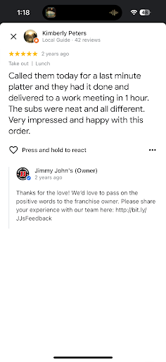 Read moreOrdered mini Jimmys online to cater a work event. Sandwiches arrived cut in thirds and open ended wrapping, rather than the small sandwich bags the half sandwiches used to be packed in. We ordered a mix of 4 sandwich types and received only 3 varieties. I contacted the store immediately to have our order corrected and was told: 1. That they no longer offer mini-Jimmys and 2. That I must be mistaken, because the sandwiches are correct quantities... As I'm staring at the boxes, with exposed sandwich ends, it's obvious to see there's no turkey. When pressed, the woman on the phone just said, "I'll give the GM your feedback." I asked to speak with the manager and was told that he's too busy but would call me back. That was 11am yesterday. Still haven't received the call. Not sure how anyone else feels, but I'm skeptical about having everyone's hands scrounging around a box of sandwiches with open ends exposed. I'm really not interested to share germs these days. Also disappointing for my coworkers who don't eat certain meats that their turkey option was missing. Really disappointing experience for an office that has ordered lunch multiple times weekly. Thankfully...