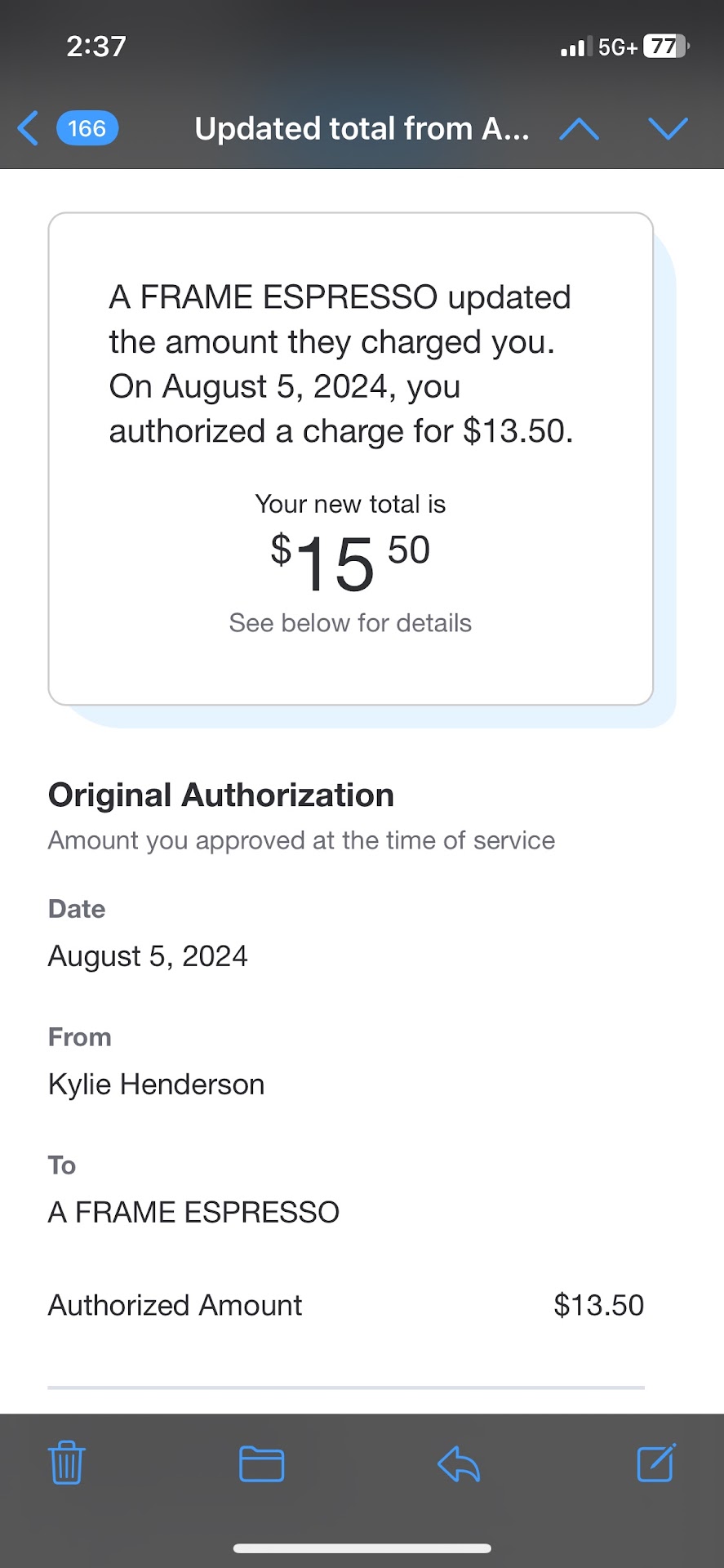 Read moreWhat would the start of the weekend be without another food review 🥺. This local spot for coffee is arguably the local's favorite and it is ALWAYS busy every time I pass by. My daughter, back for the previous night, renditioned me and took me to breakfast and chose one of her favs, the A-Frame. The staff member that helped us KNOWS customer service. She strove to make sure to ask enough questions to get our order right, this is becoming a lost art. Their coffee is second to none and guaranteed to please even the most educated palates. Strangest thing for a guy who prides himself on paying attention, I had no idea they served food 😵💫. The bagel was fresh and chorizo burrito tasty and warm. Plus A Frames are cool and evoke happiness and an old worldly charm, at least to me. Plus aren’t my nails 💅 great 🤔😳