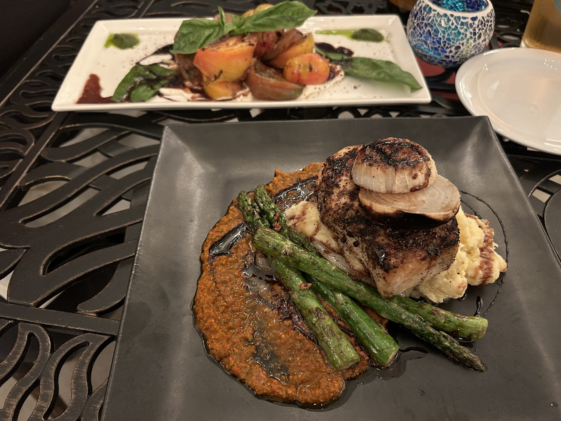 We ordered the clam and mussel chowder and the seared sea scallops. There were only few tables—my 6 or 7. The orders took what we thought was a long time. Both of us had worked in restaurants before.