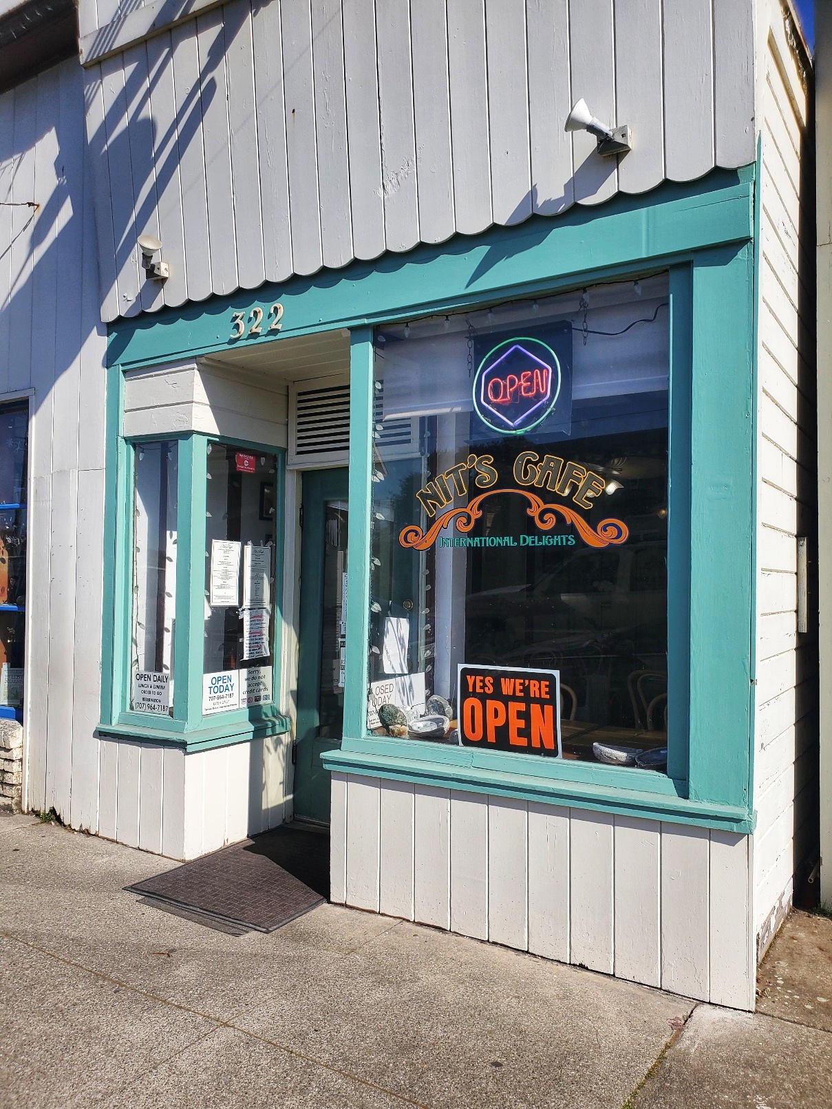 We walked in about 2:30 in the afternoon. It looked closed, but said "Open" in the window, and while we were looking, the owner came out and invited us in. She was the hostess, cook and waitress! As we sat there, we wondered if we had made a mistake coming there, since the restaurant was empty except for us. (Afterwards we knew it was because it was mid afternoon - WAY past lunch hours!) The food on the handwritten menu sounded good, but it seemed a little "fly by night." We were a little hesitant, so while waiting, my husband looked the restaurant up for online reviews. They were good, so we decided to stay. SO GLAD WE DID! The food was most excellent! I had the Thai red curry with chicken. It was the best I've ever tasted, and I've tasted a lot! (Thai food is my absolute favorite). My husband ordered the Pad Thai with shrimp and chicken. It was also delicious! The servings were huge, and we ate the rest the next evening. Again, we were amazed at how complex the flavors were - amazingly delicious! Don't let the atmosphere (bare bones) fool you here. It is well worth it. I don't know how this 1 woman show does it all, but she EXCELS at it! Later, when we mentioned Nit's Café to our B&B owners, they said yes, that she is a top trained chef who used to work at 2 fancy restaurants in Mendocino before she went out on her own. My husband and I HIGHLY RECOMMEND eating at Nit's Café. We will definitely be back on our next adventure to...