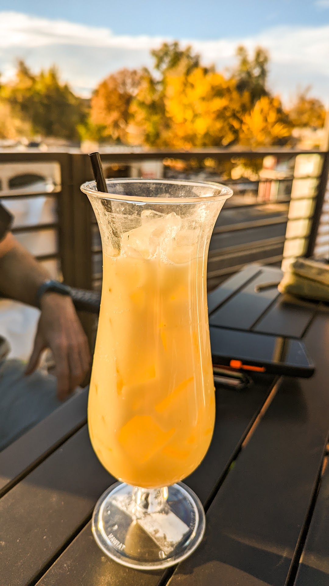 We have biked by this location a ton and ogled the rooftop bar. Yesterday we decided to stop in on a beautiful fall day. The rooftop is amazing. The fall colors, the sun, and the view of the hubbub after a surprising win for CSU makes this bar a great location. However, after trying to order one of the five beers they were suppose to have up there and it being unavailable our feelings went down a hair. Then we ordered a margarita but were told they were unable to do frozen ones at this time. Well, okay.... Next we ordered two painkillers (drinks) which again aren't frozen (which they offer on the menu) and she comes back with one (filled to the brim with ice, see below photo, you couldn't even move your straw around!!) and says they don't have the materials to make another. Well, okay...Someone in our group ordered the wings and two people said they were fantastic. They did look good! Then we tried to order another beer which didn't ever make it to our table, but unfortunately and maybe predictably, did make it onto our bill. The margarita and painkillers were $10 each but filled with that much ice it was ridiculous....and a Pacifico for $8??? With so many restaurants and bars in Fort Collins we probably won't be back which is unfortunate since the rooftop has...