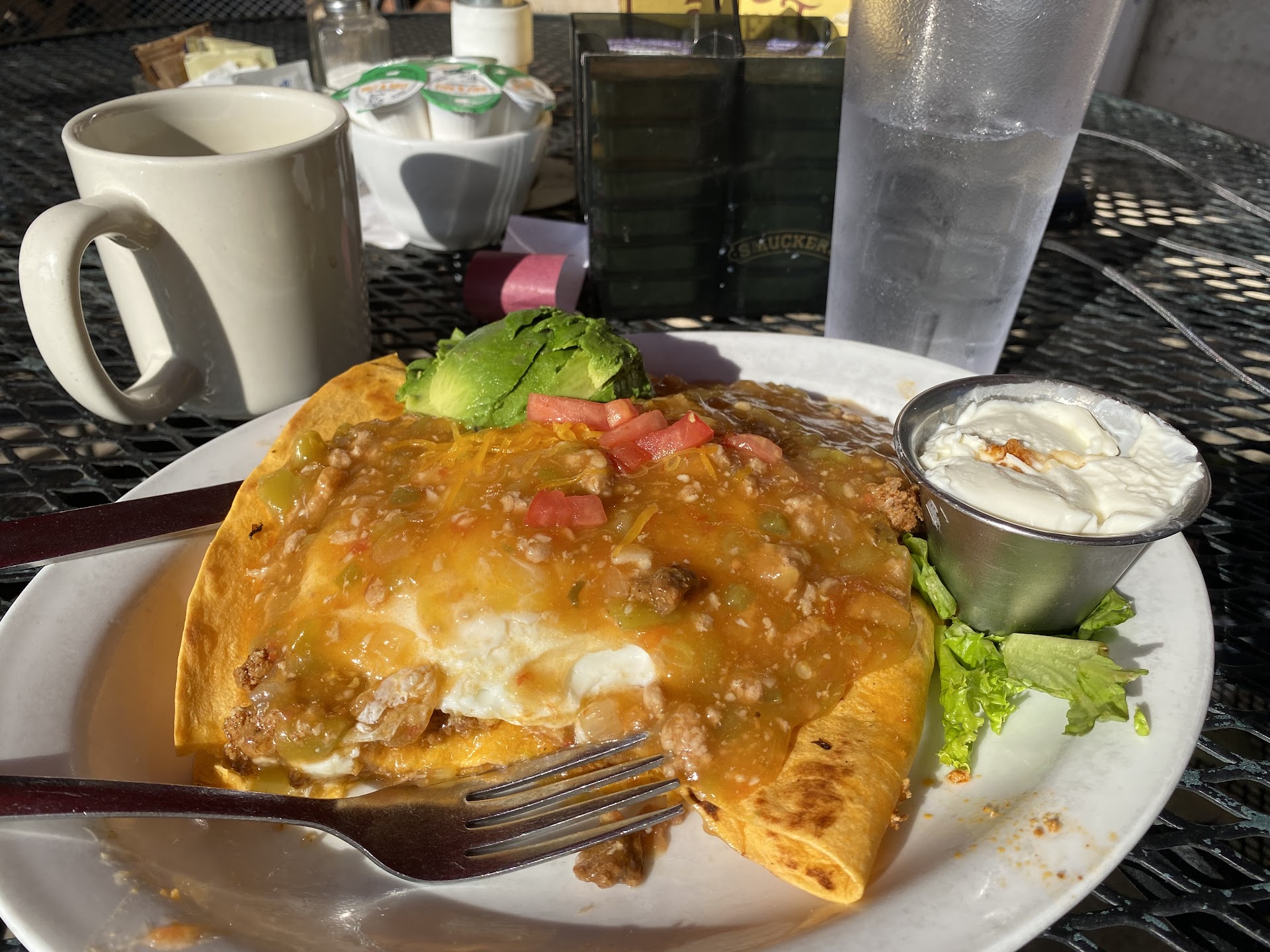 Had breakfast with the family here yesterday. Ive never eaten here but I've lived here for 15 years. Its nice and bright inside. I like all the paintings and the bathrooms are clean. The service is nice, the servers always had a smile on. The food was not the best though. I probably won't be coming back, I was not impressed at all. Not everybody enjoyed what they got. I appreciate that this is a local more homemade restaurant but certain things had me second guessing. I got a pork breakfast burrito that came with cheese and eggs with green chili sauce on the side. It was so bland and boring... The pork was dry, there was hardly any cheese, and the eggs seemed really bad quality like they were dull and fake (they weren't, its probably because they used those gross factory raised white eggs). The green chili sauce was the only thing keeping me from not wasting that meal. Even the sauce was sort of boring too though. So i would never recommend getting their pork or any of the other ingredients. My mom had a spinach quiche but low and behold its just microwaved. It was obvious. If it was homemade, you would be able to tell (one hint is the crust). My sister had the chicken fried steak which she didnt finish because it was too thin and dry. Apparently at Vern's, you get them thicker. Her husband got a breakfast burrito smothered in the green chili sauce but he didnt say anything so he wasnt impressed either. My aunt and cousin seemed fine with their dishes, they are not very picky. I ordered a cinnamon roll and my aunt ordered a waffle for us all to pick at. The cinnamon roll was okay but I've had way better. The waffle was better then the cinnamon roll once you put the butter and syrup on it. So overall, not good enough to come again. I really didn't appreciate the quality when this is supposed to be local...