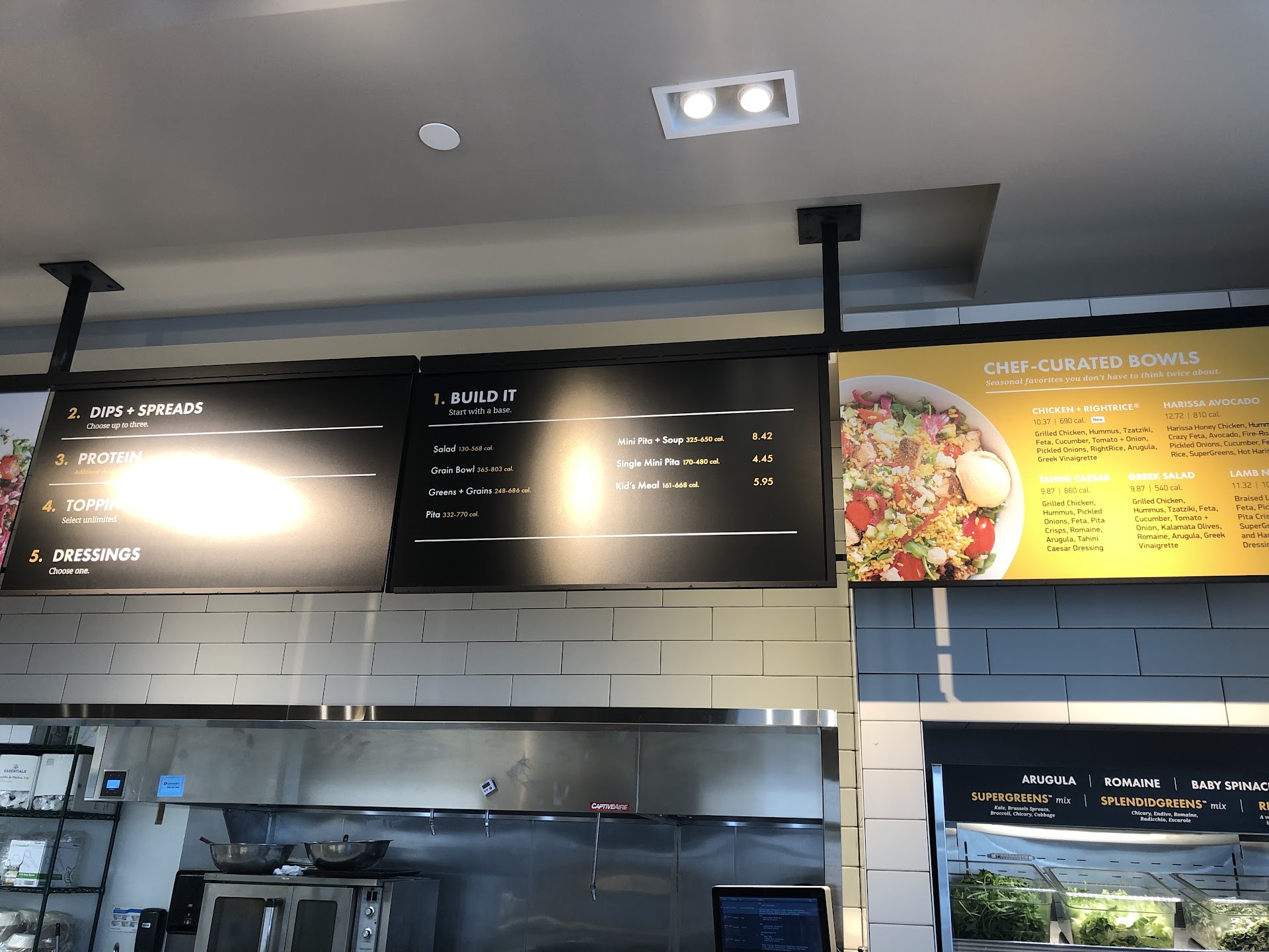 Word of advice: BUILD YOUR OWN BOWL. You get more free toppings, and it costs less than ordering the equivalent menu item. I literally read the menu bowl I wanted, then had the guy "build" it one ingredient at a time. I got exactly what was on the menu, but with more toppings and it was $1.50 less. NOTE: different menu items have different proportions of greens and grains, so if you like mostly rice, ask for it, don't just take what they give you. Example: the lamb nachos have 2 scoops of greens and one scoop of rice; the chicken bowl has 2 scoops of rice and one scoop of greens. Of course, if you build your own, you get whatever you ask for.