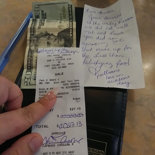 Im begining to think decent asian cuisine is out pf the question in fort collins....the service and portion size was truley amazing but the food was gross all og it swimming in sauce and all sauces were overseasoned....however i will say that the food did not have hair or mold in it and it was hot. The portions were huge. The server jen was truley amazing and artentive even though she was the only server during lunch she made sure we had our food promptly tge chili house thai was so sweet it tasted like syrup....jen quickly apoligized(even tho she didnt need to because she did not cook it) and had a kung pao sauced chili thia made for us promptly. The soup was the highlight of the meal they def. Need to revise thier recipe and pick 1 theme for there resturant. The ceiling is black and white checkered theme clashing with the multicolored outdated walls and floral booths. Tgey also need a cleaning crew theyre is dust above evetywhere and upon leaving ur nose will definitely need a blow. Its a place to eat. But its by no means satisfying. Eggrolls were overcooked only containing raw unseasoned crunchy cabbage...when our server brought our food back the asian lady greeted us for the remainder of our visit with intense glars and nasty looks so much so that myself and lunch company felt uncomfortable and ended up leaving but not before we left that server a 20 dollar tip she deserved it...from now on ill go out east for my Asian cuisine needs fort collins is lacking good taste where this particular cuisine...