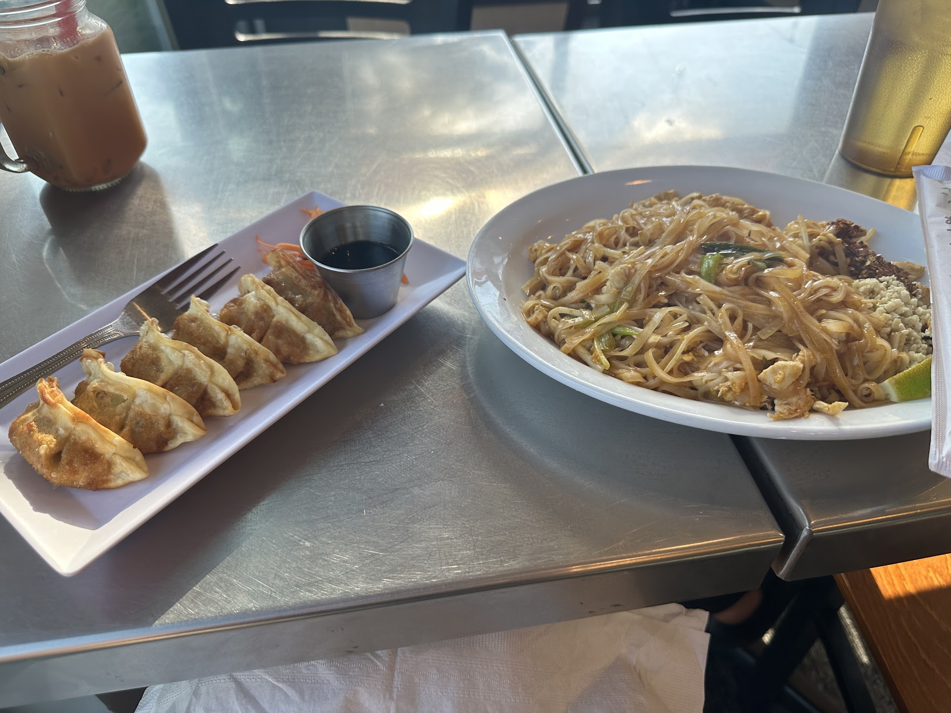 Read moreIt was OK. Noting that I would go back for. My girlfriends wanted to go because of the appetizer, some kind of shrimp wrapped with lettuce. They said it would have been better with cilantro. One of my friends said the steamed Goyza was amazing at this location. It wasn't for me. I got this hot coconut soup - the best thing we got. That would be worth ordering if I was in the area. The meals were OK. I got some kind of drunken noodles...? It was OK, I didn't finish it and didn't want to bring it home. We all got different drinks, Thai tea - tastes like liquid chocolate, Thai coffee - tastes like kaluah without the alcohol, butterfly pea drink - has a honey aftertaste I wasn't a fan of most of the things we tried today. Service was good. The restaurant was clean. Food was prompt. It was an open area with almost no privacy or sound muffling available. It's not really a place for a...