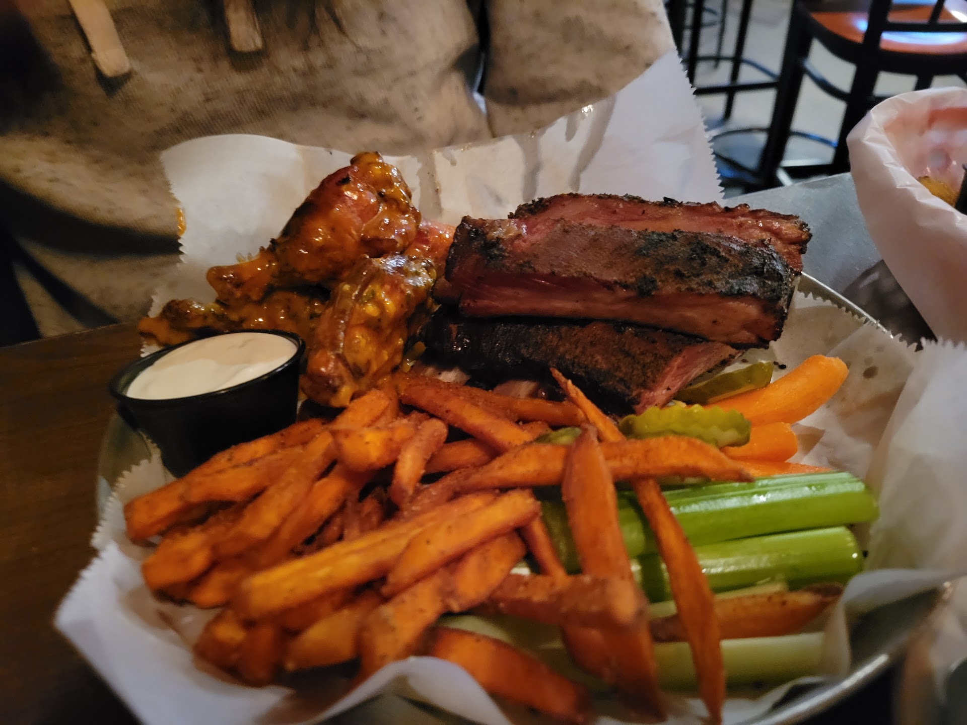 Sixth, the BBQ sauce in the bottles was a bit too sweet and not enough savory. It pretty much tasted like an off ketchup. I barely touched it. The sauce that came on the meat was not the same as the sauce in the bottle though and went well with everything!