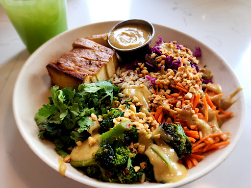 Service was friendly & fast: my order arrived maybe a minute or two after sitting down and logging in to the free wifi. I overheard someone else who had a to-go order remark that the order arrived very fast as well. I ordered the curry salmon bowl and while it was tasty, I felt that it was lacking in veggies and sure enough, after looking online for nutrition info, I'm learning that the curry salmon is advertised to come with roasted veggies in addition to shredded kale, which is all the veg I got. The sauce has a hint of spicy heat to it. Overall tasty but very disappointed I did not get what is advertised. I would still come again to try other bowls.