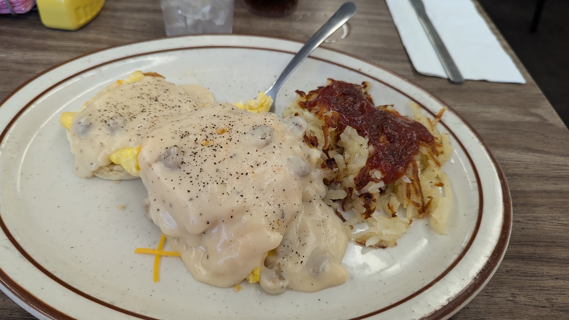 Another ordered a bacon omelet only to be served a sausage omelet (he detests sausage) with the eggs having the "spongy" disgusting tasting consistency. He ate most of his meal because he was hungry, but later paid the price by spending most of the evening in the bathroom instead of enjoying the 4th with his family.
