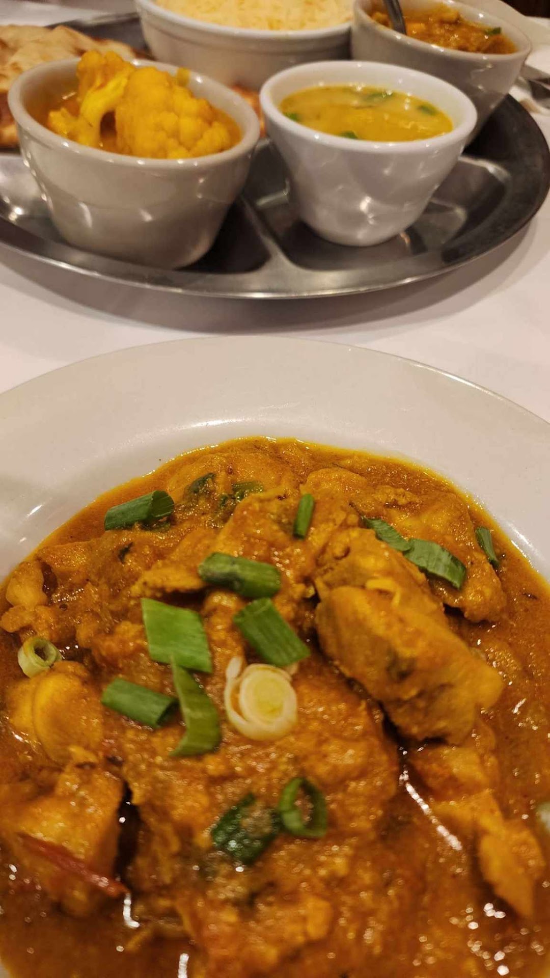 Older woman greeted us (party of 2) and asked "menu or buffet" and we said menu... then proceeded to wait at least 10 minutes in the dark as we felt more and more awkward. A man brought us water. We waited a few more minutes before giving up on ever receiving menus or ordering drinks and settled for water and the buffet. Samosas were lovely, curries were pretty decent, naan was average, dahl soup was good, rice pudding was good. We never did see the older woman who seated us again- another younger server refilled our waters once. And a second younger woman brought us our check and said "thank you so much, have a good night" and that was the most interaction we saw in this restaurant. I'm generally a forgiving person after working in food service for 8 years myself, but this was kind of a bummer for a $40 meal. The weirdest part was watching everyone around us receiving menus, drinks, and being asked how their food was while we were ignored. Tried to flag a server a couple of times but no one even made eye contact so we ate,...