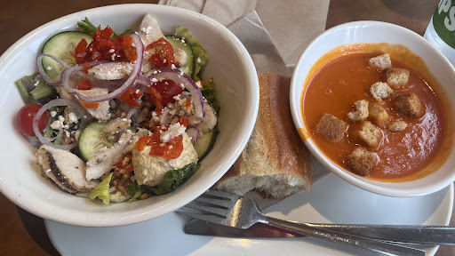 Read moreOur food was excellent, our cashiers were kind and helpful.... however, Jay the food runner needs to work a bit on his Dining Room Etiquitte. He was talking so loudly about the most mindless things to the girls working during our meal (flirting I reckon) that it was really hard to concentrate on our own conversation. What was meant to be a nice break from the road, ended up being a bit of a headache. There were many dirty tables and messes on the floor he could have easily cleaned up. When a guest walked up to him with her plates asking where they go he directed her to take them back to her table - which was a ways away. He could have easily taken the plates from her, for her, and wiped down a table or 2. If you are that slow - and your cashiers are busy, he should be contributing to the dining room not yacking away at full volume about non work related conversation while guests are all forced to listen and watch. We have always loved Panera and will be back, just to a different location. I review nearly every place I dine at, and I do so honestly. So this certainly isn't personal. Your establishment has potential you just need to instill some etiquette and work ethic in 1 or 2 people. Voices carry, everyone is watching, everyone is listening, and most of us are prompted to review by Google as soon as we walk away from a place, so step it up guy. Work harder, girls...