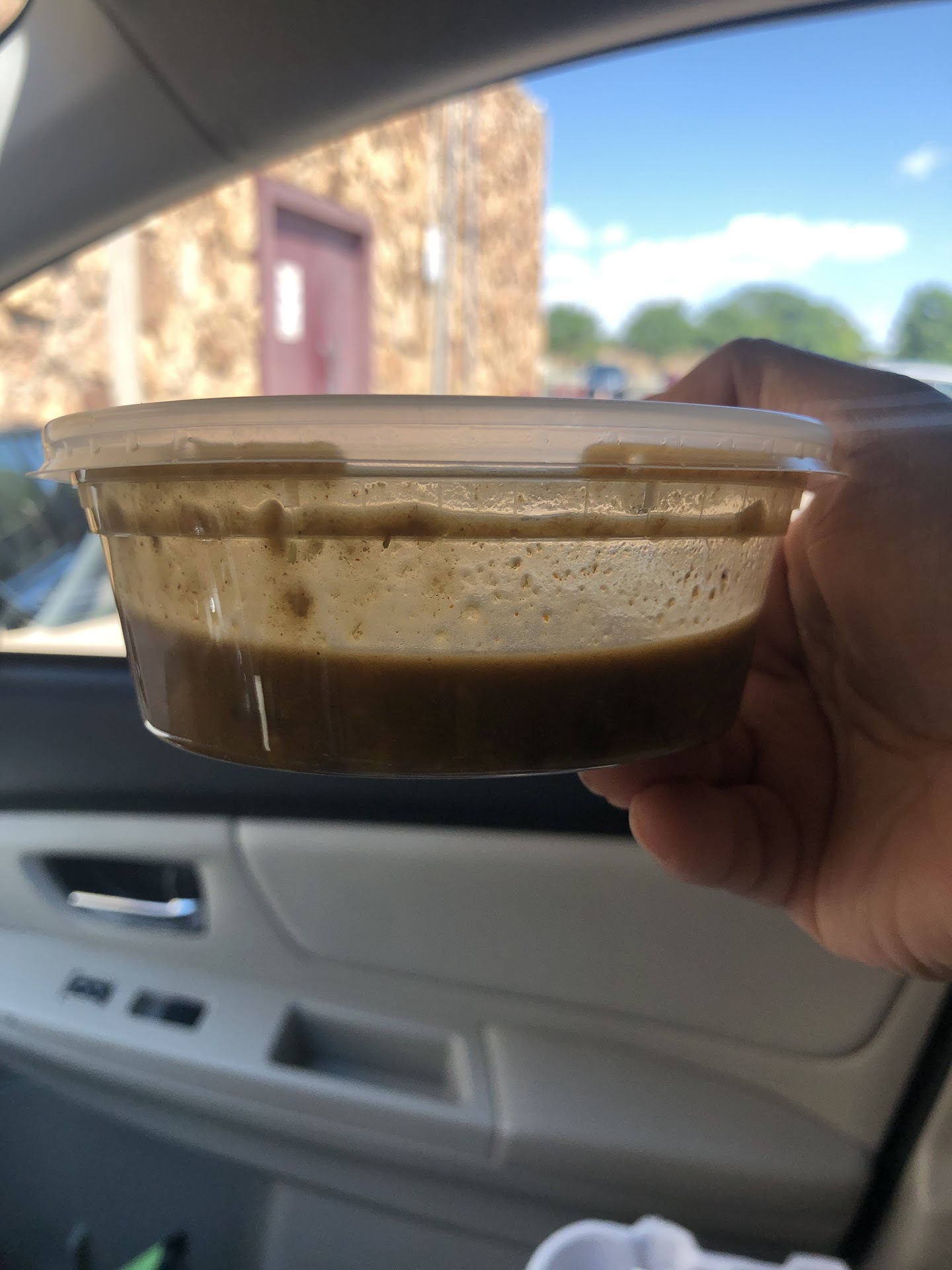 She seemed flustered and instead of just asking or having someone speak to me she decided to reprimand me and let me know to not make this a habit before grabbing a proper to go container for liquids. Even for the sauces, there are no to go cups. She wanted to poor the tamarind sauce in the bottom of the container.