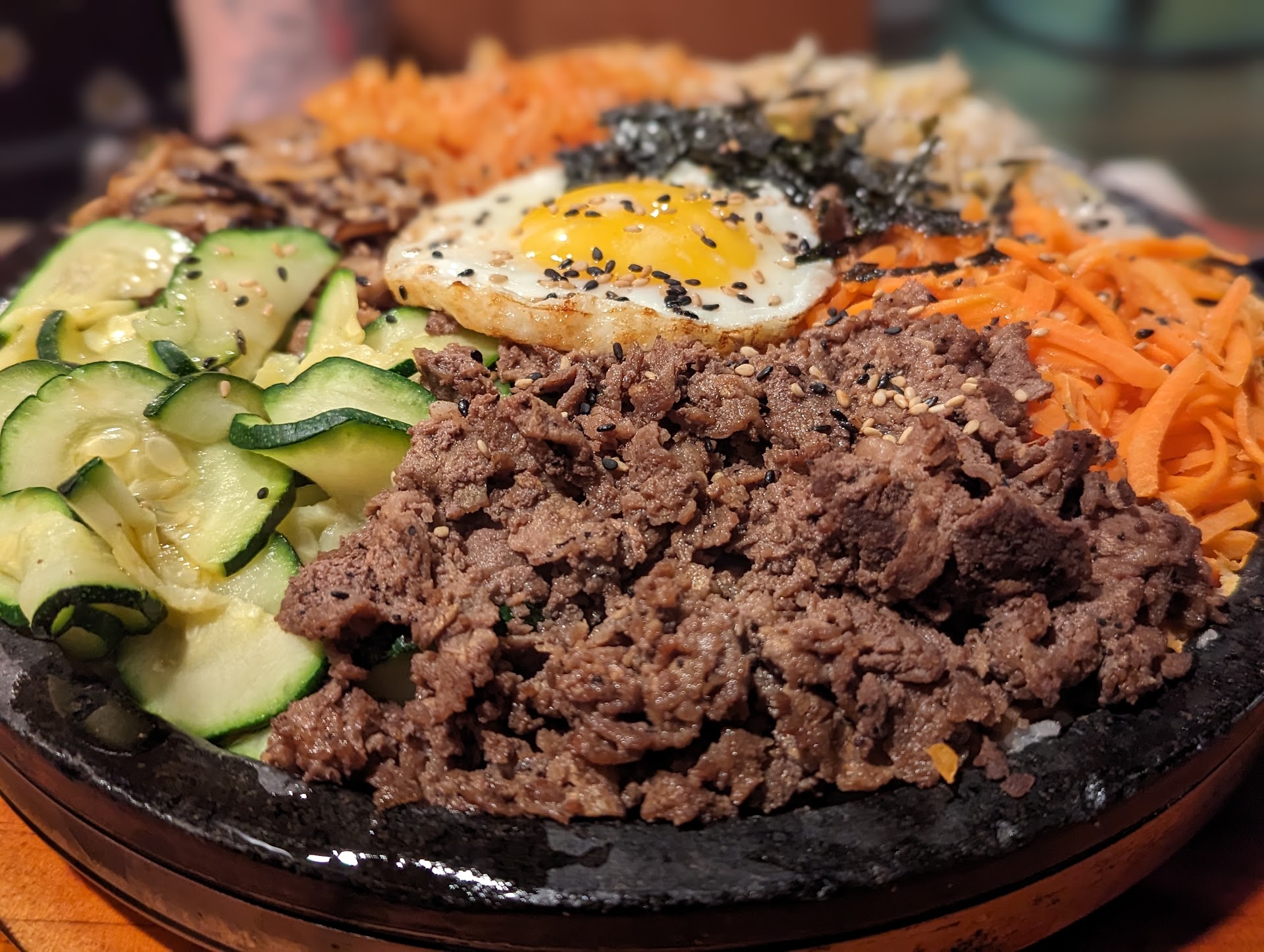 Read moreFirst time coming here since I live in Aurora but decided to make the drive to Ft Collins and visit some people. I also wanted the chance to see the owners to see if they'd recognize me or not. I was one of their first customers when they opened up a sushi place on Prospect just after the train tracks basically a hop, skip, and a jump away from the Prospect Plaza apartments. I did happen to see Ji Yoon(sp?) but not her husband Sung Won. Sadly, she didn't recognize me which I didn't wholly expect her to. My friends and I ordered a lot of food trying to sample a little bit of everything. We had the kimchi pancake to start. It was a bit mild for my taste but overall good enough where the kimchi didn't overpower the dish itself. We also ordered a rainbow roll and a candy cane roll. The candy cane roll was phenomenal. I was feeling a little risky ordering this since I'm allergic to shrimp, but luckily I had some Claritin in the car and popped a couple before chowing down. The description alone sold me on it. There's a piece of Fuji apple in it that gives the whole roll a bit of sweetness to it as well as subtly changing up the texture with the crunchiness from the apple. I wanted to try the Suh Special but decided against it as it felt like it would put us over the limit. We ordered a plate of sliced pork belly which was crispy, almost like bacon. I ordered a bowl of the Army Soup (budae jjigae) which was pretty good, but not as good as a place in Denver that I frequent. Maybe since there wasn't any melted cheese in the soup? My friend didn't know what to order since she's leery of seafood because of the taste and texture of it, so I ordered a dolpang bibimbap for her. In hindsight I probably should've gotten her the dolsot bibimbap instead. The dolpang bibimbap is massive! It's so massive that I don't even think I could finish it which is saying a lot. Needless to say, she had to box it after finishing maybe a quarter of it. According to my receipt, Tao was our server. She was very helpful in providing insights into the differences between the dolsot and dolpang, but I wish she would've mentioned how big that dish was! Drinks were always topped off and she made the standard checks on us to see if everything was ok. If only I didn't live so far away, or if this place existed while I was going to college there, I'd frequent it more. I'd highly recommend this place if you live in Northern Colorado or if you're...