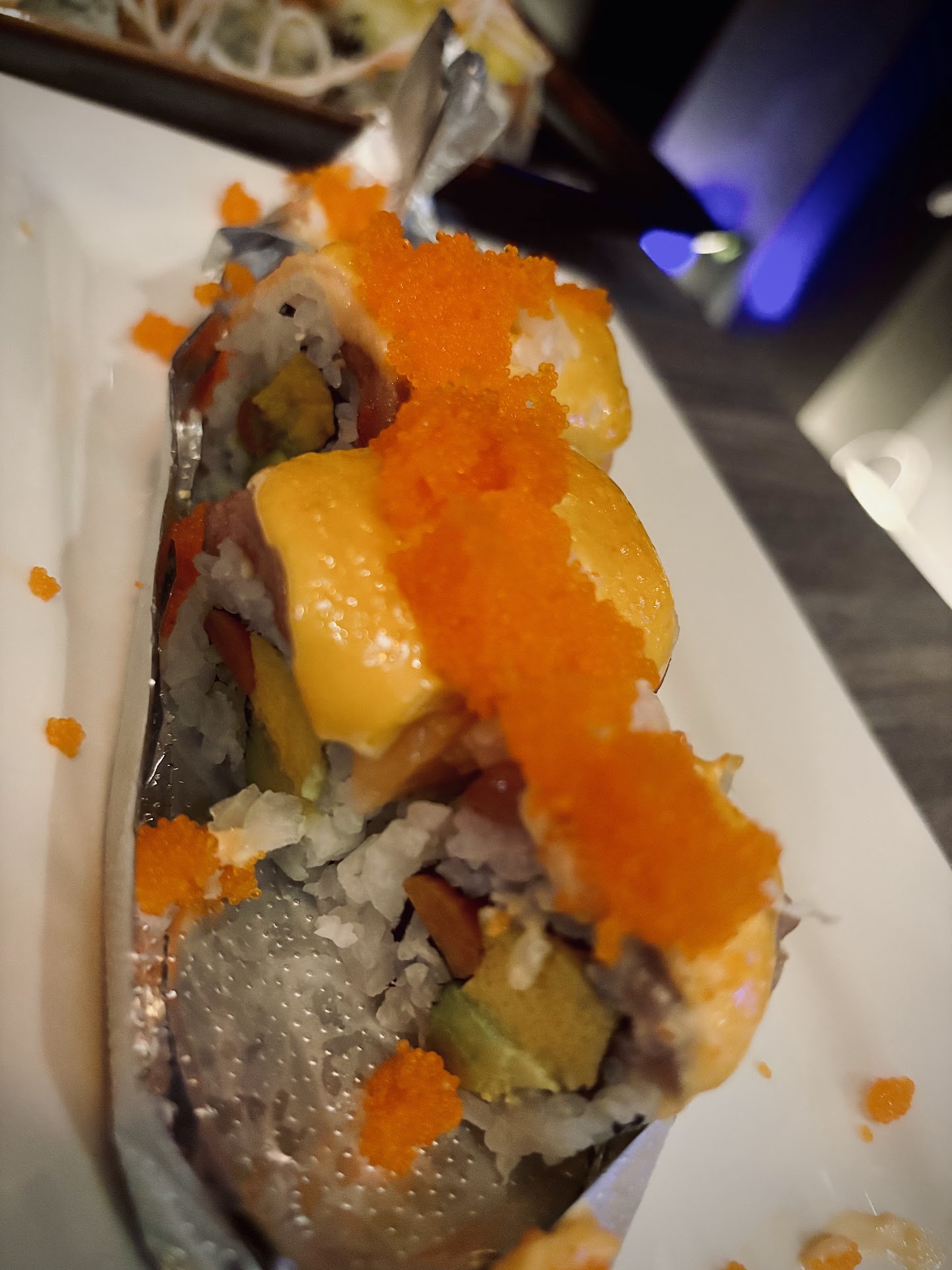 Lastly the sushi rolls ordered were a spicy tuna and a salmon mayo- the salmon mayo was missing a crunch element that the waitress described and oddly both rolls tasted identical and we did not feel the need to order any further given the quality or lack thereof (star taken).