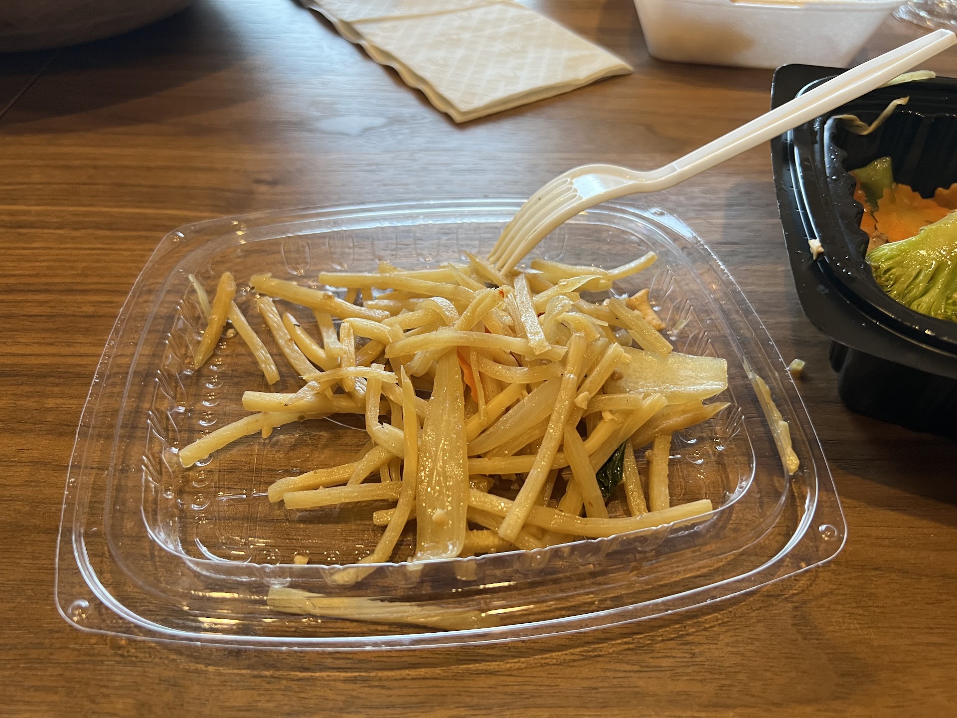 The fresh rolls had water sloshing inside the container, I assume from the washed but not dried veggies. Serviceable taste.