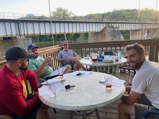 Read moreThe location is perfect! It’s so relaxing to sit outside by the river with the sun on you! There are also tables that are blocked from the sun. Plenty of seating outside! The nachos were yummy, could use more cheese sauce but still good. I love sour cream so I have to ask for more because you get a little plastic container of it (and salsa) so ask for more when you order it if you go through a lot. The wings were pretty good too! We couldn’t decide on a flavor so they brought us some of each sauce to try. I tried the new PRESS drink and I thought it was pretty good but it’s only 4% alcohol, white...