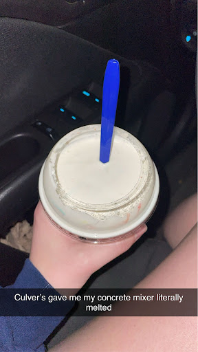 Read moreI love Culver’s, the food is so good, but just about EVERY time I go there something is wrong with what’s given to me. Whether it’s ALL of the toppings of my sandwich not being there, not receiving my receipt and not even being asked if I want it (and then not being able to give it to me when I ask for it for some unknown reason), no napkins, no side dressings, forgetting my custard, something is always wrong. I was just there tonight, and they gave me my concrete mixer, and I thought it looked a little melty on top, which is fine, so I drove off. However, my concrete mixer is completely melted through! It’s literally almost room temperature! How is that even possible?? When my order was taken tonight, the staff said multiple times that everything was made to order. I genuinely don’t understand how my concrete mixer was even that melted, and how they thought it was okay to serve me that??? I’m now questioning why I’ve kept coming back if something is consistently wrong...