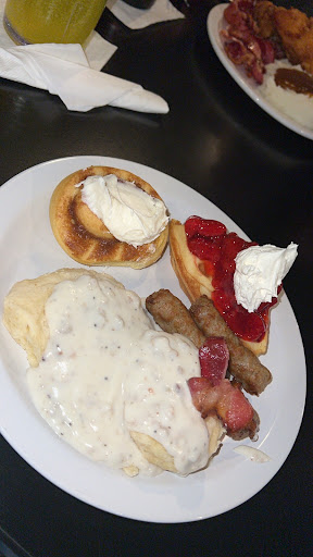 Went for lunch with my wife and we ordered the spin dip and each ordered a steak sandwich meal with fries, med-rare steak. Spin dip was good. Sandwiches were brought out well done. We waited for our waitress to come back by the table but eventually had to flag down another waitress and ask to speak to ours. When our waitress returned we told her we had ordered medium-rare for our steak and both were clearly over cooked and showed her. She asked “do you want them remade” and of course we did. She took both of our entire plates.. side of fries and all. She eventually returned with the steak sandwiches (no fries) and left. We figured maybe the fries were still coming, nope. When I was finally able to ask about our fries she said oh you want fries? I said yeah they are included right and you took them. she said yeah but you ate most of them. (I ate maybe 4 while waiting for her to actually return to check on our table) I then asked to talk to whoever the manager is because she was clearly not working out helping us. SHE WAS THE MANAGER!!! E.A. is her initials. She could actually care less about any customer there at it shows. Food was fine when cooked right, service absolutely terrible. This isn’t the first time I have had terrible service here and the food isn’t good enough to actually make me want to ever...