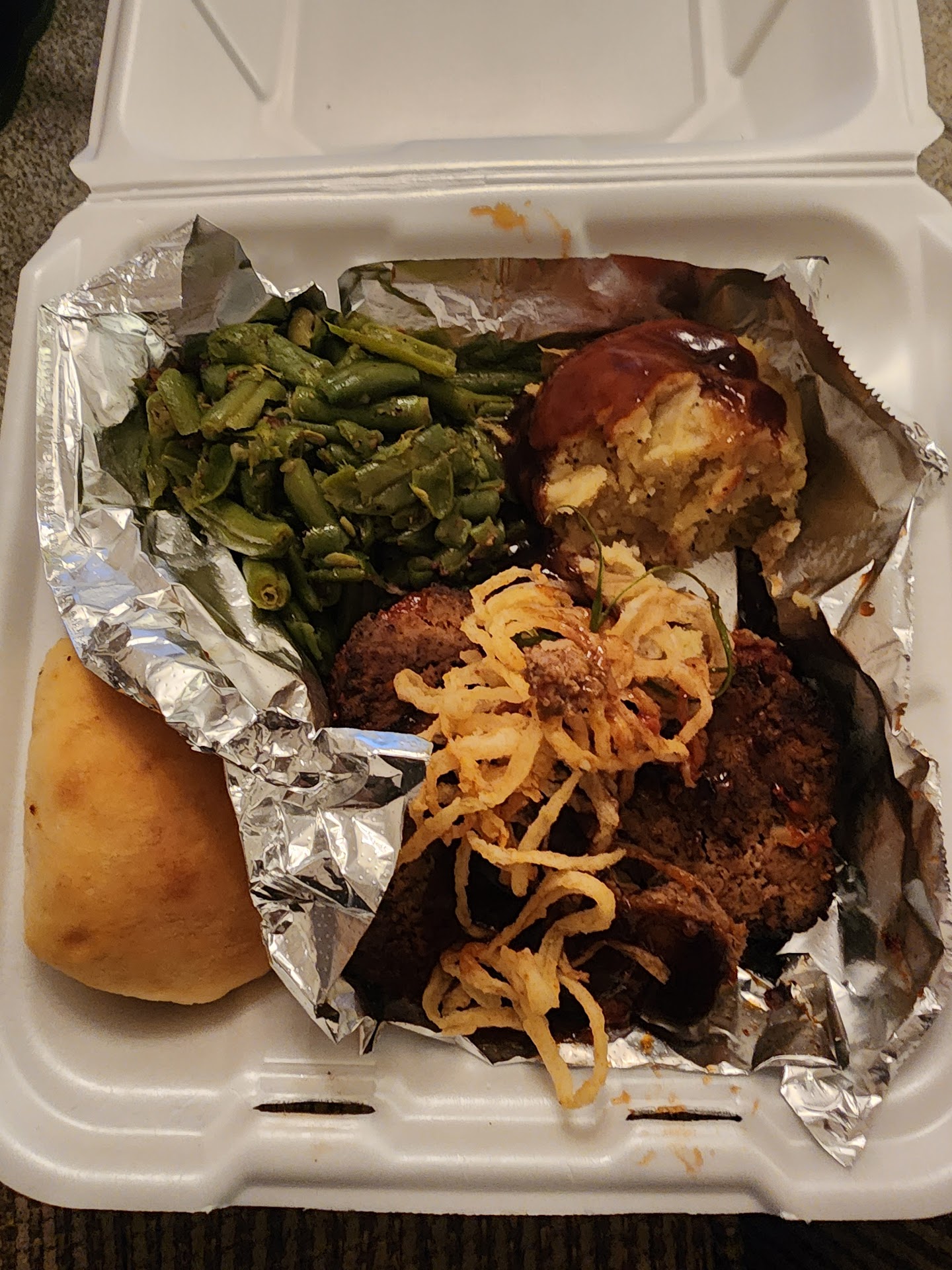 Edit: I legitimately couldn't wait to go back, so this is a same day edit. Earlier was lunch, now I got the meatloaf for dinner. Another absolute banger of a meal. I'll include a photo this time. They didn't serve it to me half-eaten, I just almost forgot to...