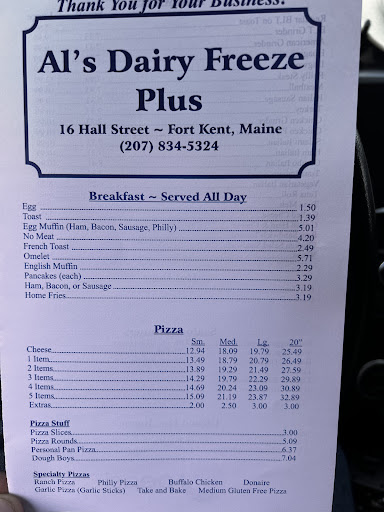 Read moreI went yesturday, and i take Caramel + Pecan + CheeseCake Wizard, the first time i try it but will certainly take it again and again!!! Service is very good, food is also very good. This is a classic trip for us to go at Al's Tastee Freeze in Fort-Kent!!
