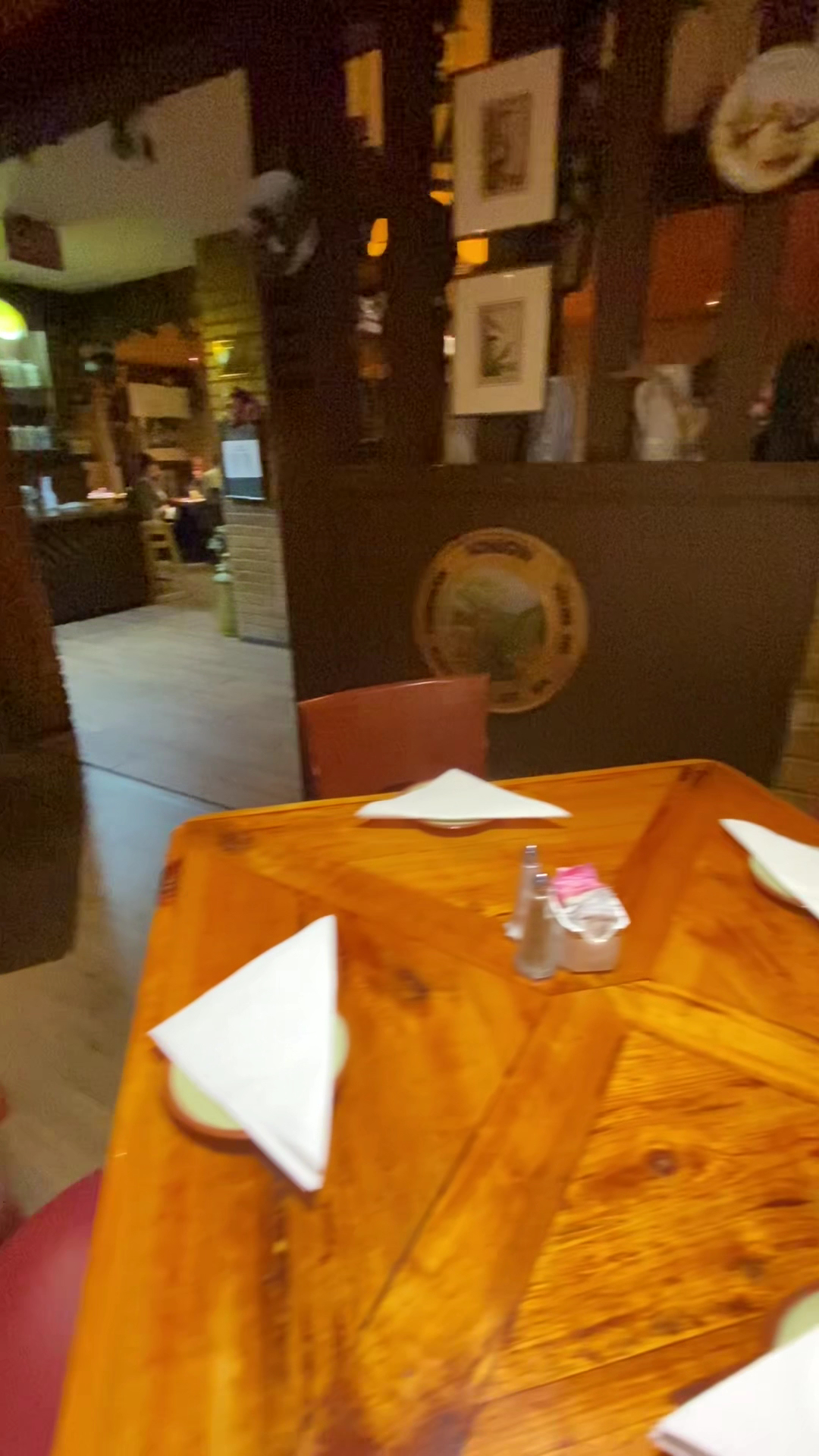 We liked the atmosphere of the place, kind of rustic. The outside looks a bit like a castle, but the interior felt warm and inviting. There aren’t any windows, but I thought the interior lighting worked well. It wasn’t overly dim, so I didn’t have any problems reading the menu.